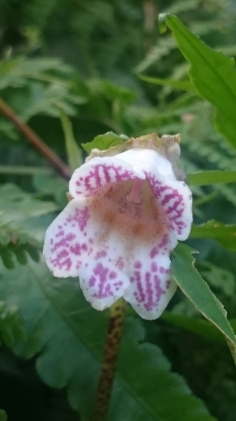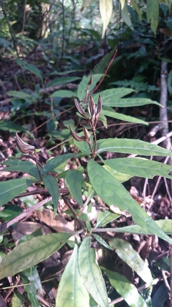 通常群生在中低海潮濕森林底層或是溪澗邊,筒狀花外側潔白內側分部紫色,褐色斑點,和苦巨苔科植物一樣有著巨大顯著的的圓筒狀花冠。在春夏時節的花季亮麗的花朵為幽黯的森林增加一點淡雅的光彩。