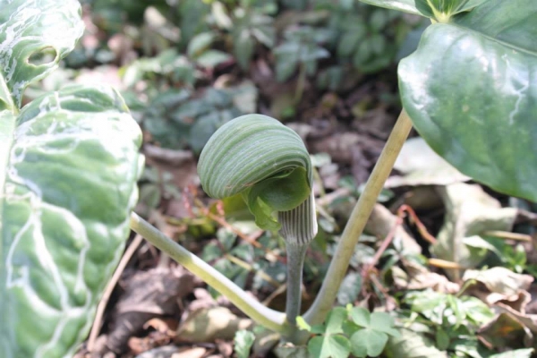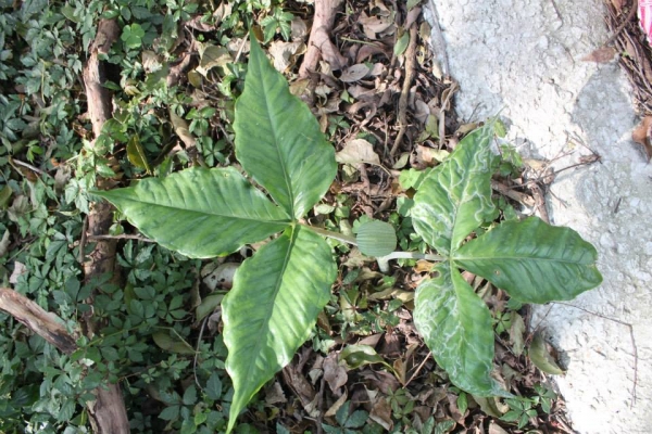 像蛇頭一樣的佛焰苞狀的花朵是申跋最吸引人的地方,一年只長兩片葉子,然後開花結果再來就休眠了。