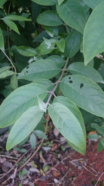 - 卵形尾端漸尖,兩面有星狀毛,對生,表面粗糙,稀疏鋸齒緣