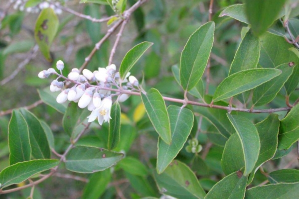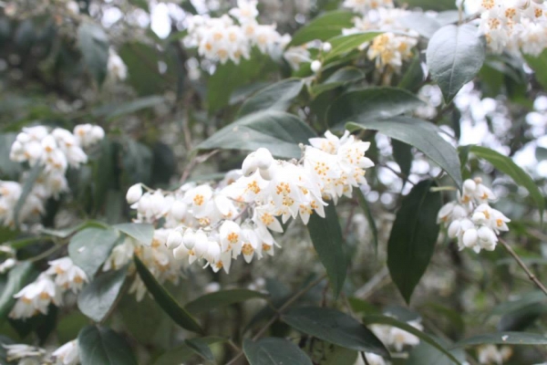 - 頂生於枝端,圓錐花絮,花序長約8cm,雌雄同株,花色純白,花瓣5瓣,花萼5裂,花軸有粗毛,花梗長4-6cm。