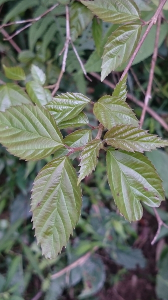 - 卵形,對生,銳鋸齒緣,葉基圓形,表面光滑,背面脈上披短疏毛