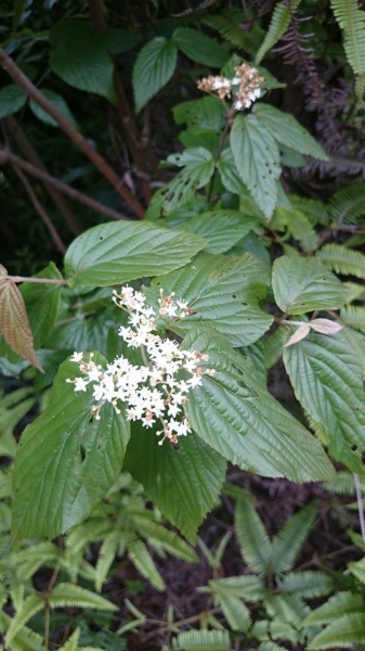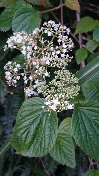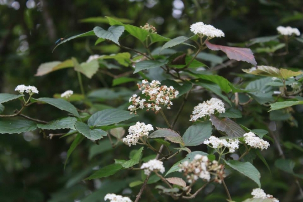 - 白色花冠5裂(偶有4裂),花徑5mm,複聚繖花序,頂生