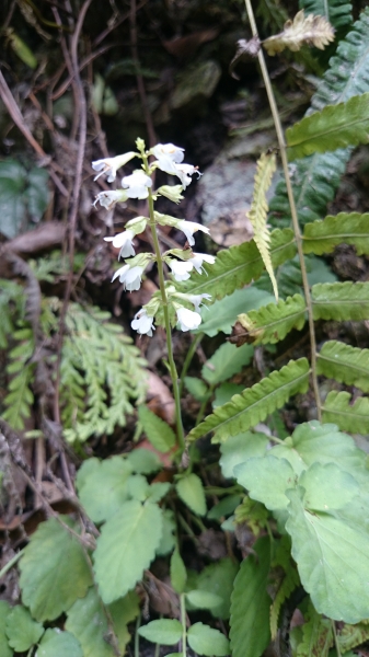 - 總狀花序,呈輪生或聚繖花序;花冠白色,偶帶點紫色緣;兩唇,下唇中裂片全緣,筒內不具毛環;孕性雄蕊花絲上方具附屬物