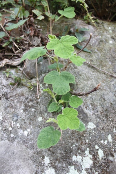 - 圓心形或圓形,先端圓,基部心形,不顯著的 3~5 裂,有不規則的鋸齒,葉脈上常有短毛絨,背面通常具有較多的毛茸;葉柄長 4~6 公分,密生有毛茸,少數鉤刺或近似無刺