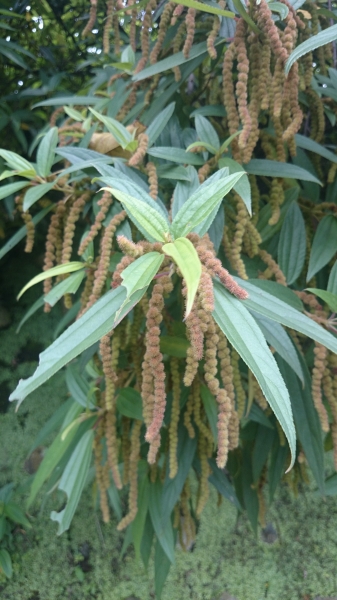 - 多數叢生排列呈腋生的葇荑狀花序,花多數,小形,單性,紅色或近似紅色