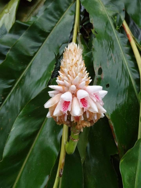 - 總狀花序長 12~15 公分,花序軸被絨毛,花冠白色,無毛,花冠裂片具緣毛,兩側的橢圓狀披針形,後方的一枚較寬,唇瓣卵形,頂端微凹,白色而漸紅