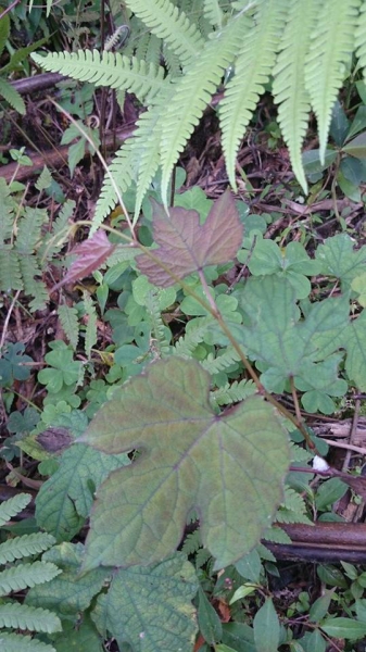 - 單葉互生,紙質,三角狀心形,上部偶為 3~5 淺裂,葉基心形、圓形或近截形,葉尖漸尖或突尖形,葉緣為有小銳尖的粗鋸齒,上面深綠色,光滑,下面稍淡,脈上疏被短柔毛。