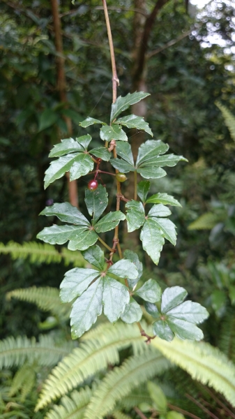 - 掌狀複葉,有小葉 5 枚;小葉大小略不一致,橢圓形或卵狀披針形