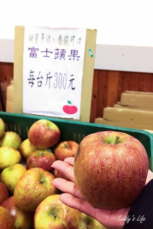 到了遊客中心先直奔福利社看看今年販賣的蜜蘋果,沒想到的是....小顆的蜜蘋果竟然都賣完了!只剩下每檯斤300元的高級蜜蘋果,這果實大又飽滿,我們決定買一顆來吃看看,這顆秤重為165元。我們的眼睛都睜得大大,這麼一顆要165元啊!後來吃了它,裏面都是蜜,果然等級有高。