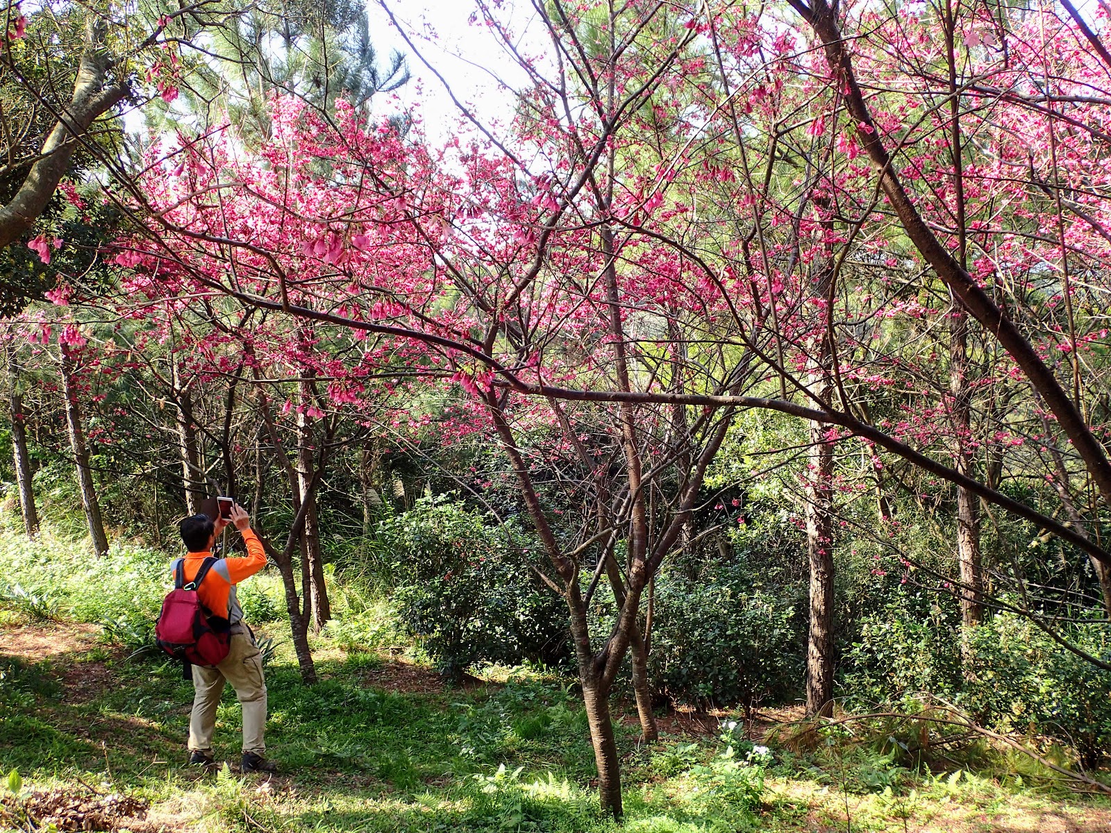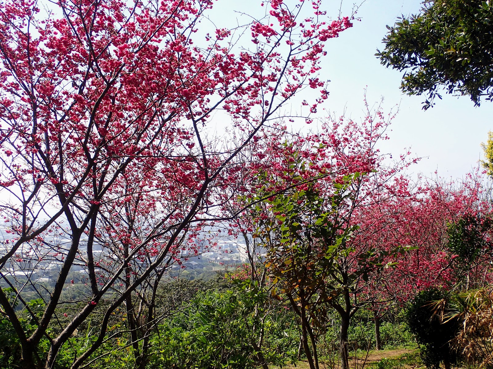 很快來到瞭望台還有涼亭, 此時正逢櫻花盛開, 園區內整片浪漫的粉紅色, 美不勝收