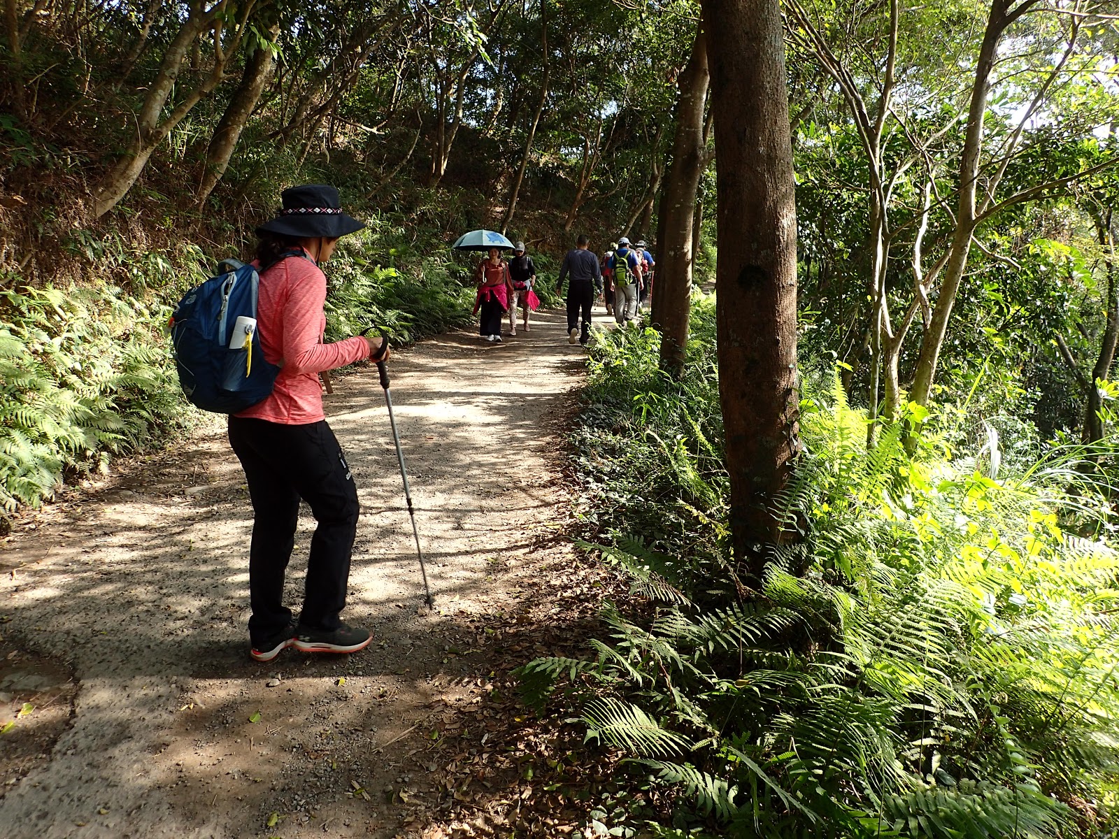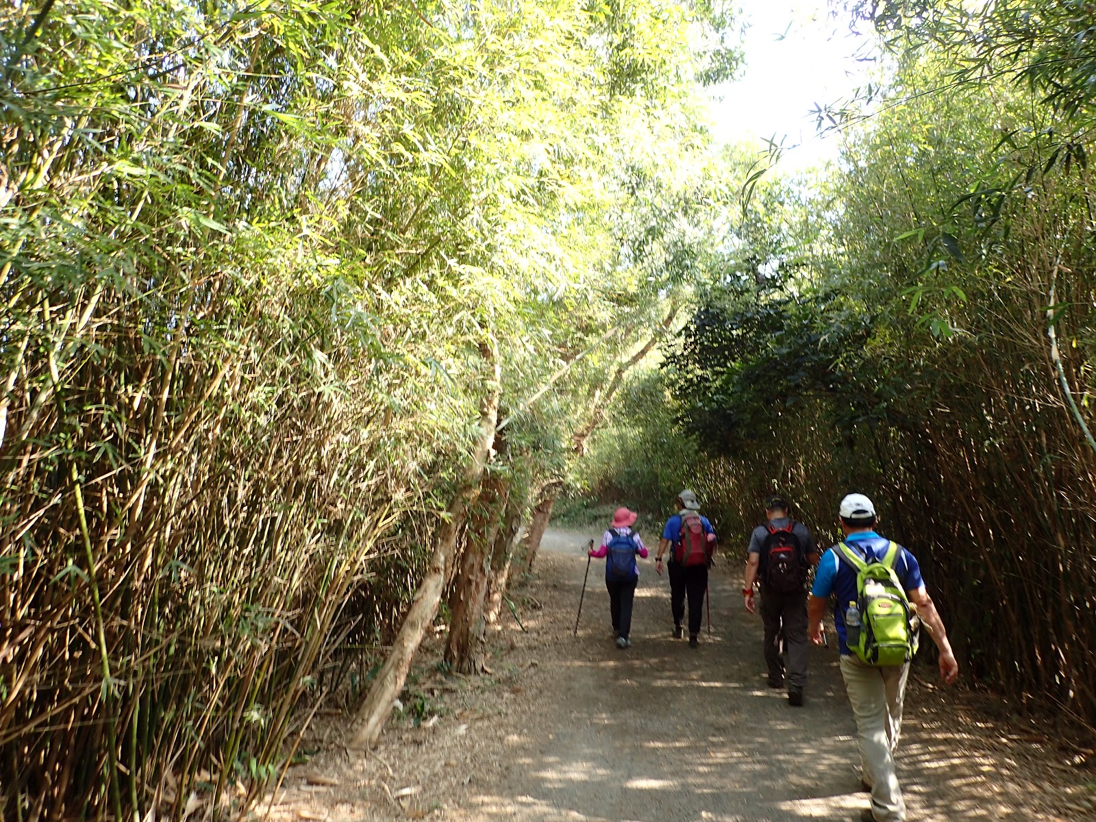 清幽的山徑平緩好走, 陽光穿梭微風吹拂, 鳥鳴聲不絕於耳