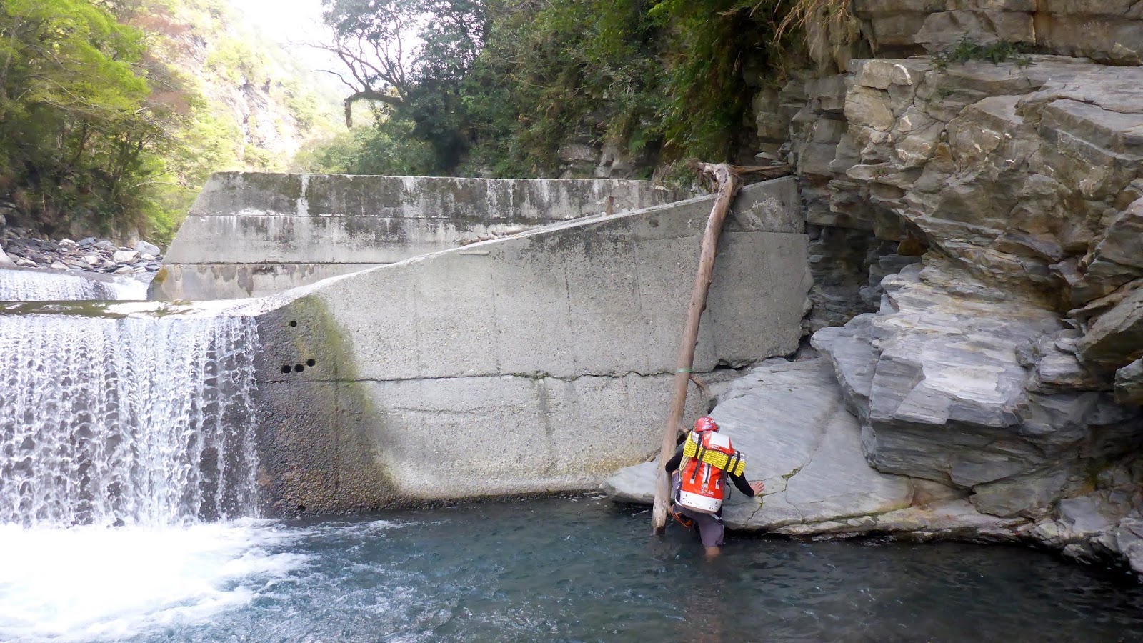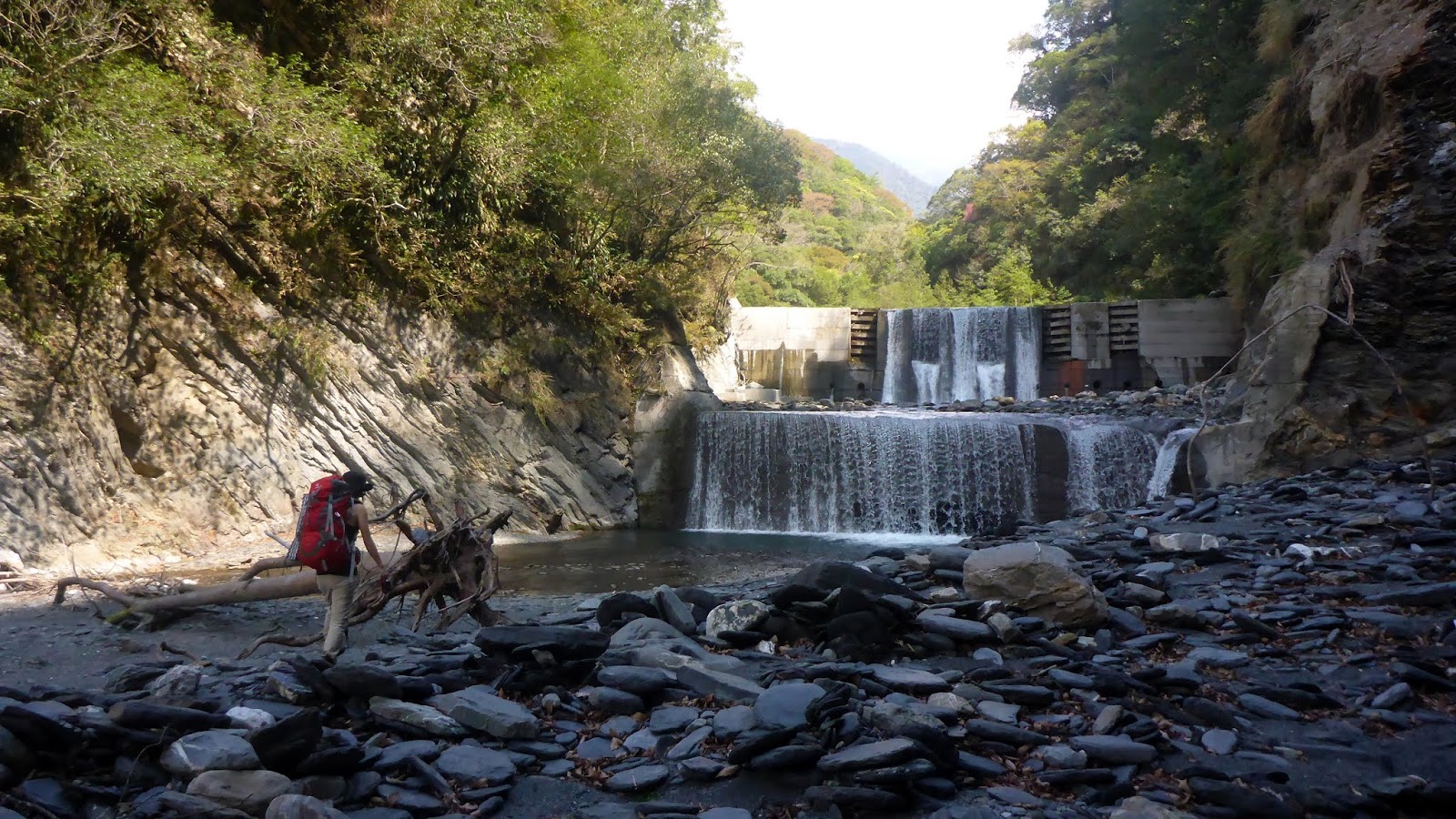 下一處攔沙壩最後兩道,第五及第六道攔沙壩分別為第三及第二難的,有大背包的人要注意是否會頂到岩壁。