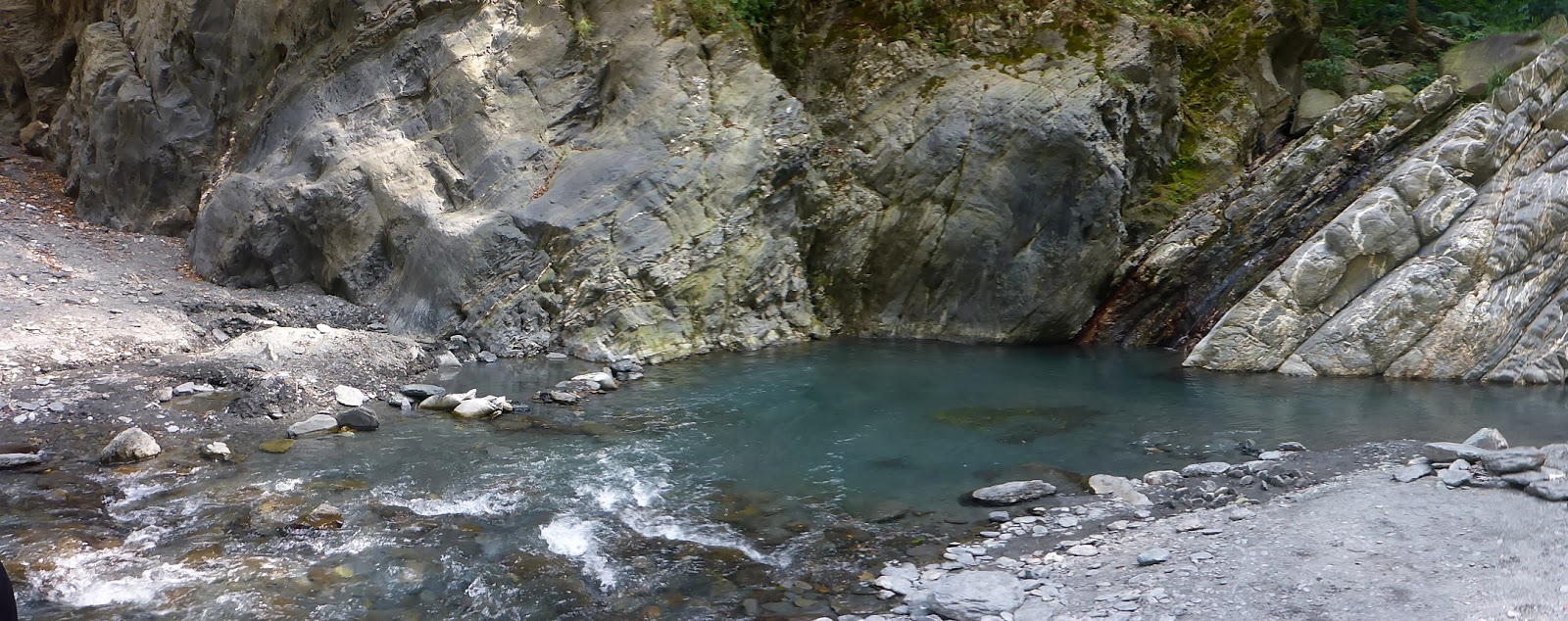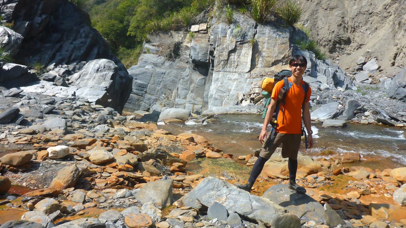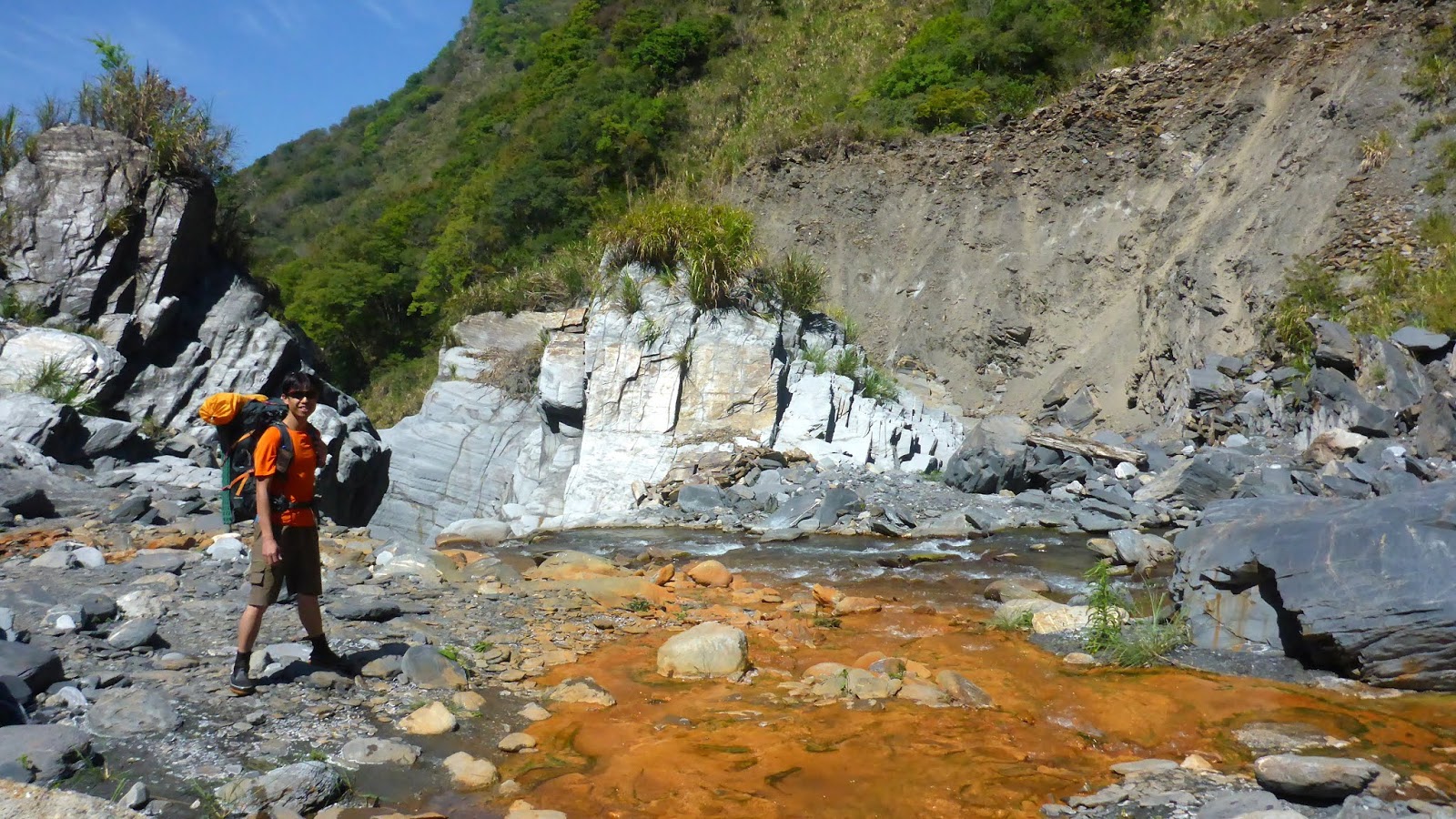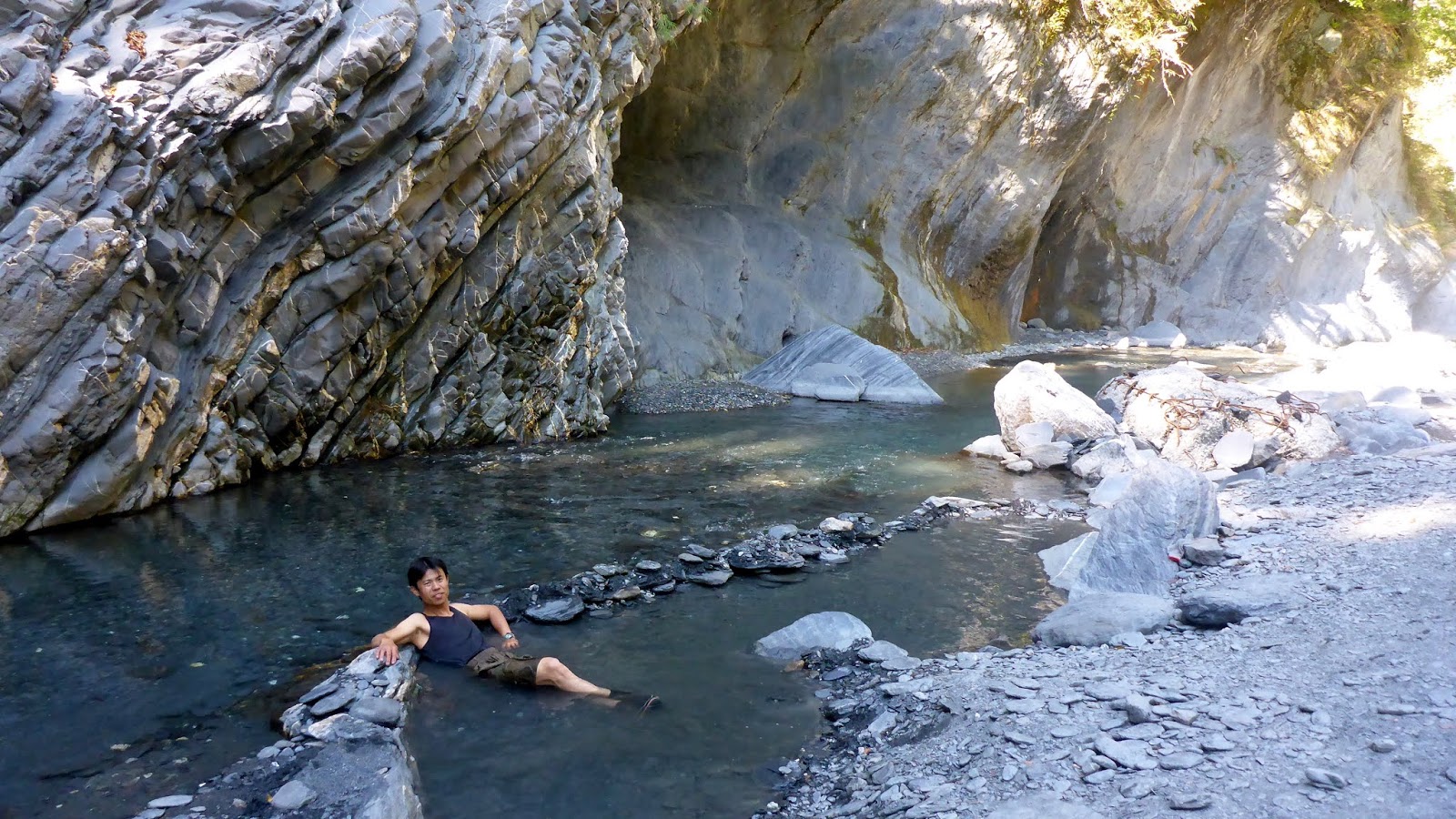 通過這六道關卡,後面就天下太平了,輕鬆走河床前往溫泉區,通過一大片沙洲後,看到前人築的池子,不知不覺間溫泉區已經到了,從停車處走到這總時間2小時。