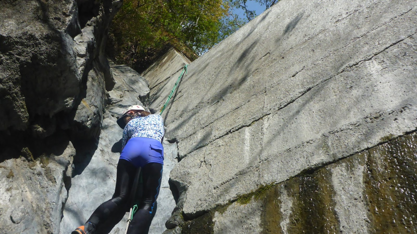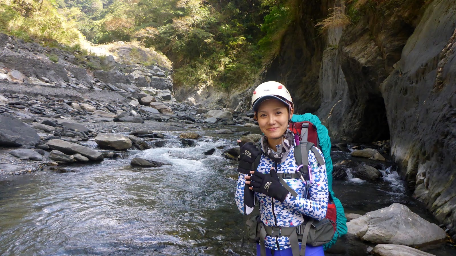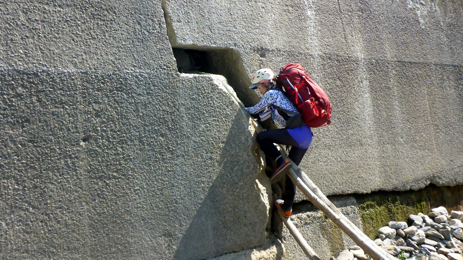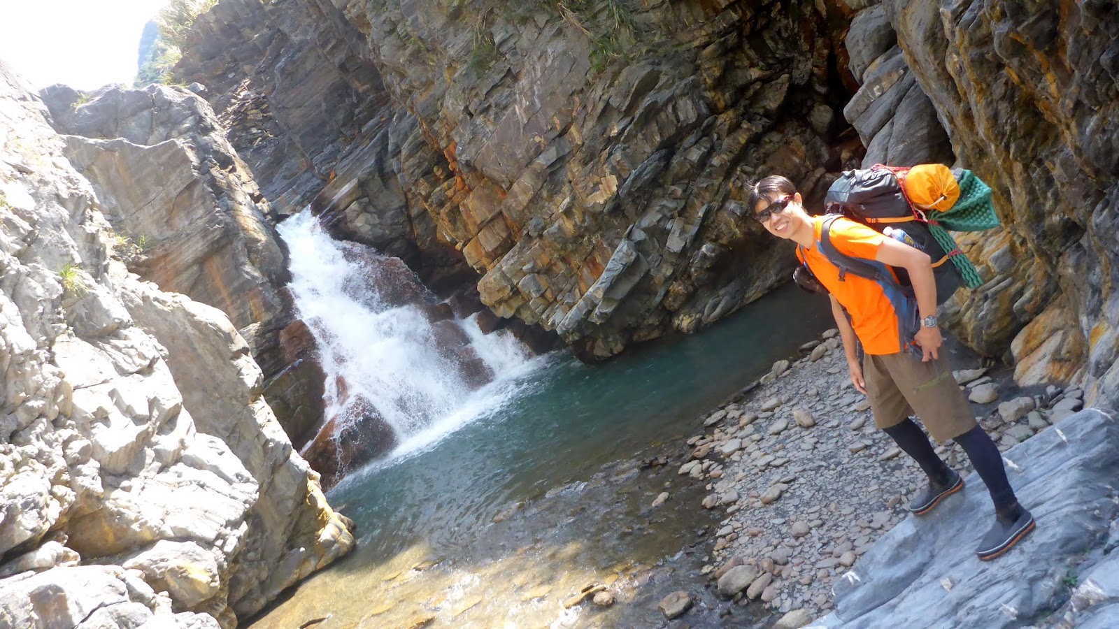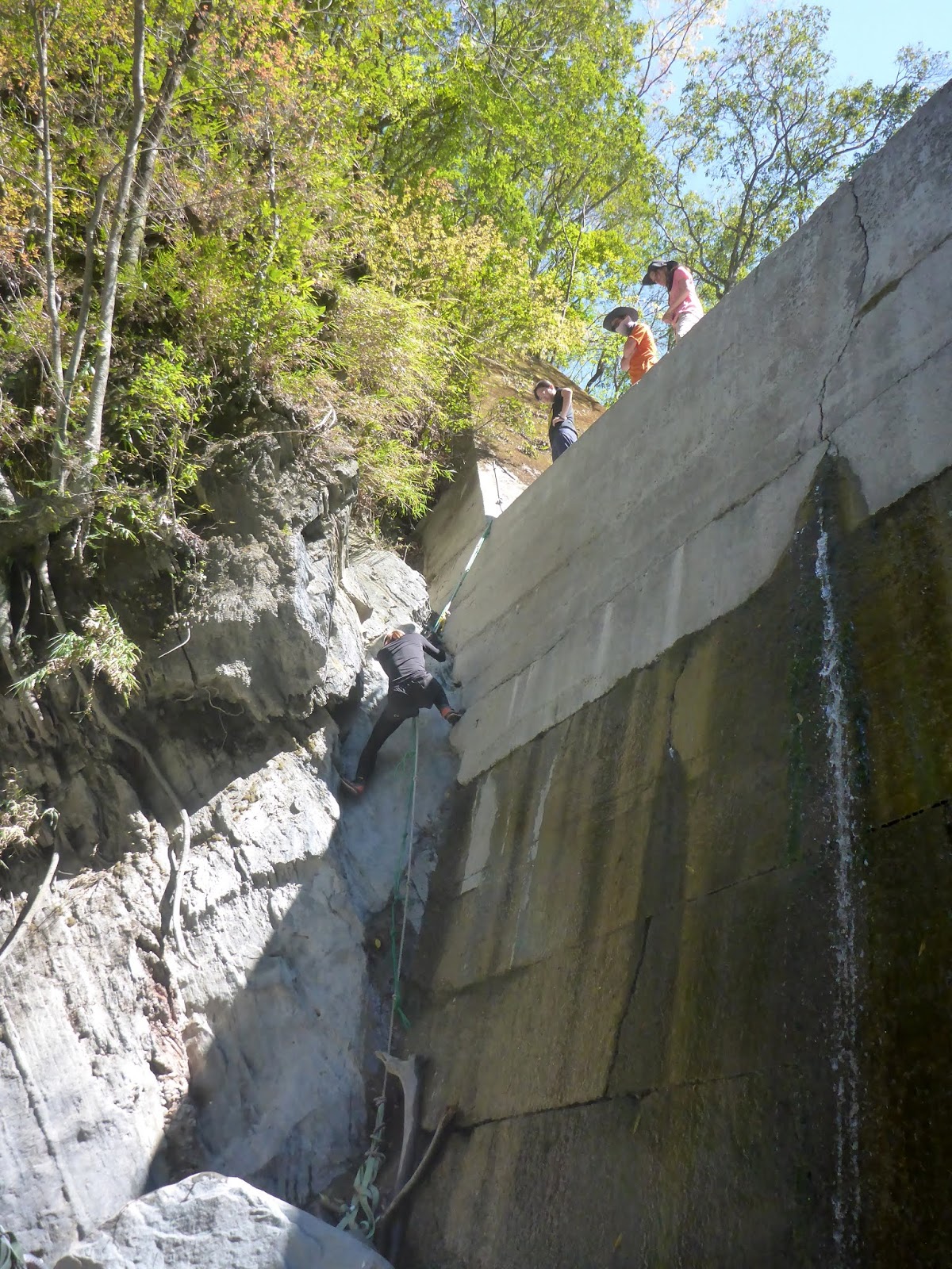一開始的踩點落差高也有點滑,我們採人包分離的方式,降低徒手攀爬的風險,因為這摔下來真的不是開玩笑的。