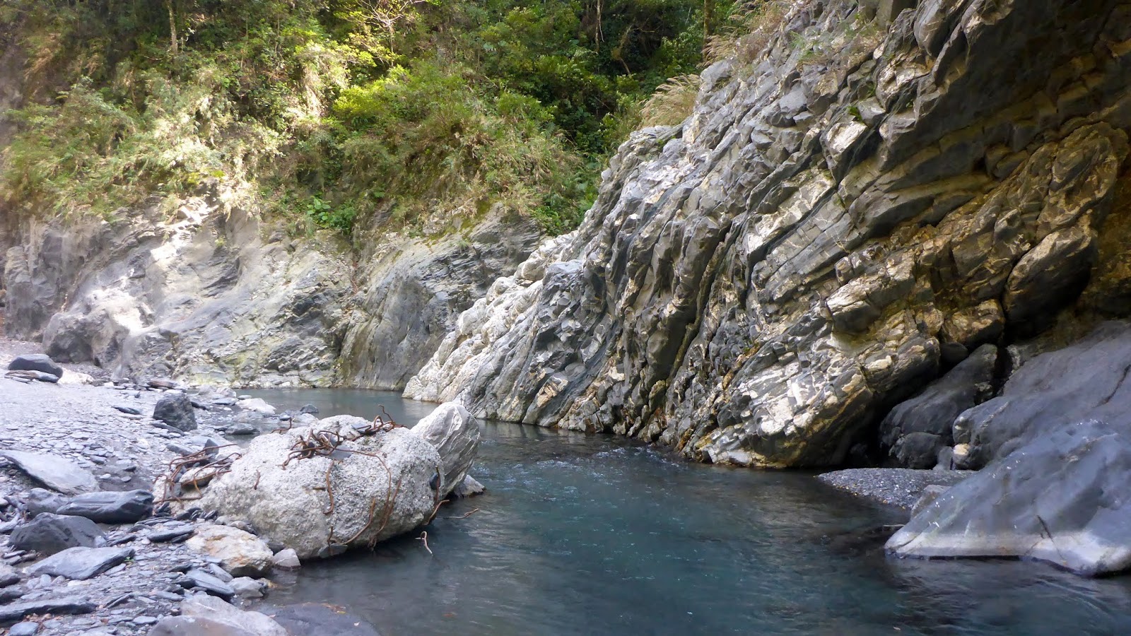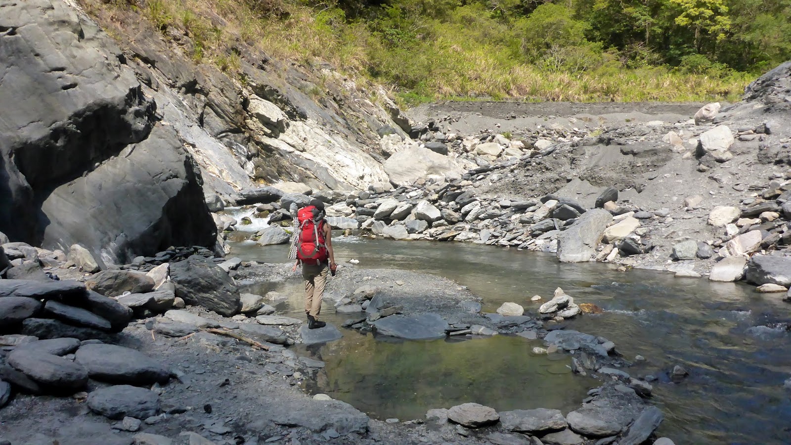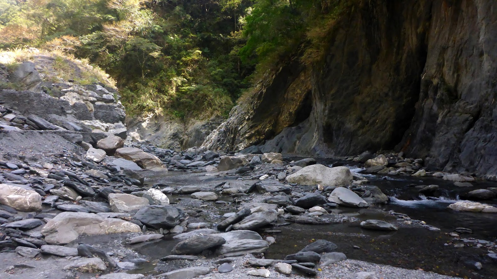 寬河床走著走著進入小峽谷處