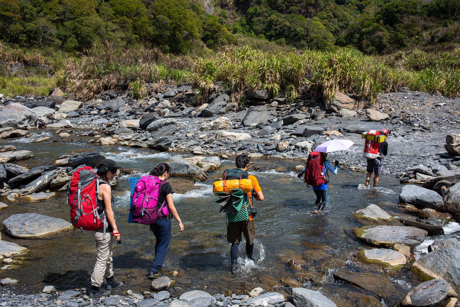 溪水量小,輕鬆渡溪