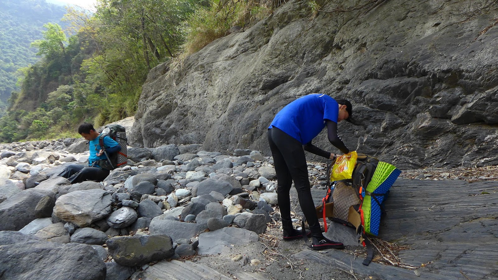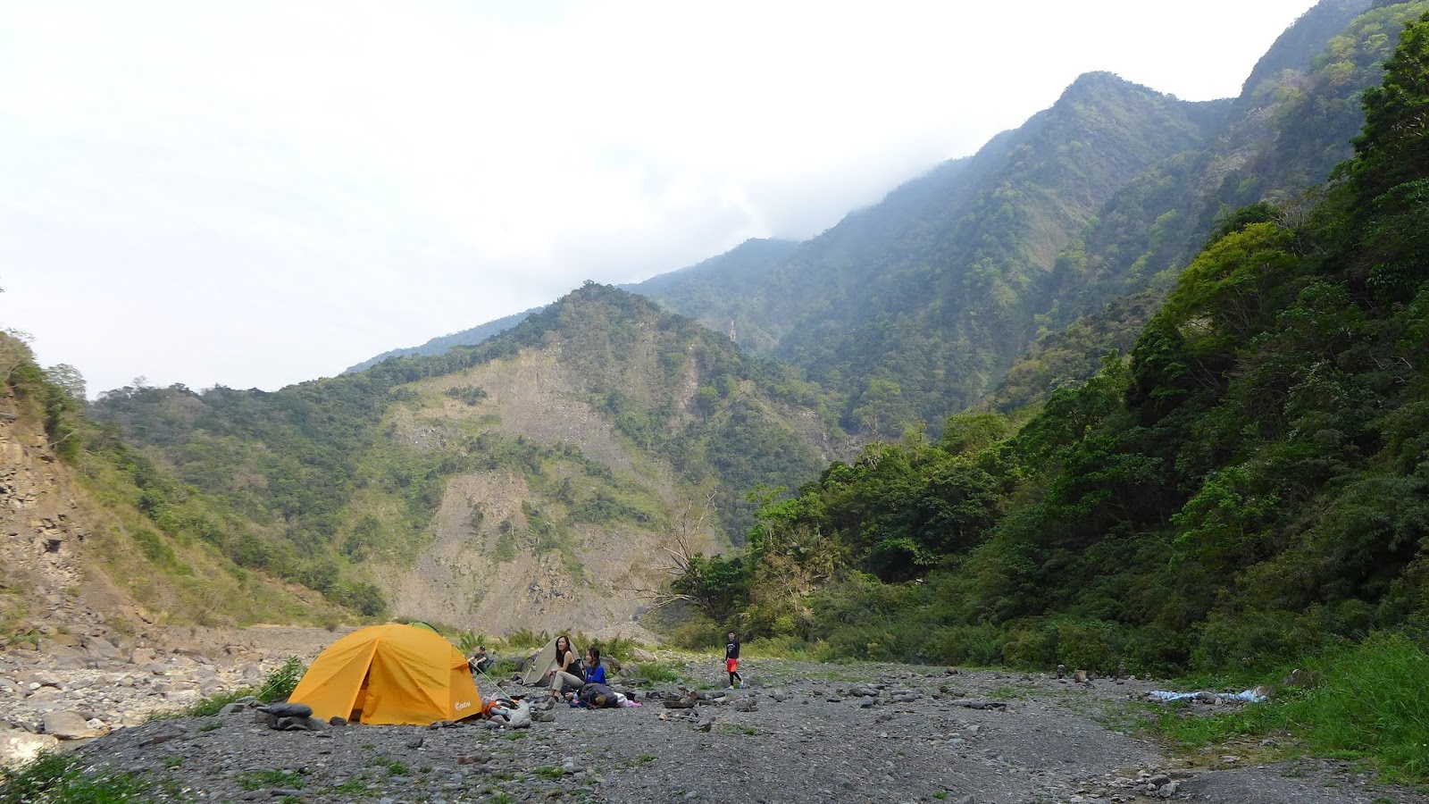 過了剛剛那道小彩壁,離十坑溫泉依腳程大約40分鐘~1小時左右,我們用了45分鐘,下午2點半就到達十坑溫泉,好早呀,把帳篷搭起來就開始耍廢歡樂時光了,原本有計劃紮好營輕裝十三坑來回,但帳搭好的當下這想法就已經跟著放水流了。