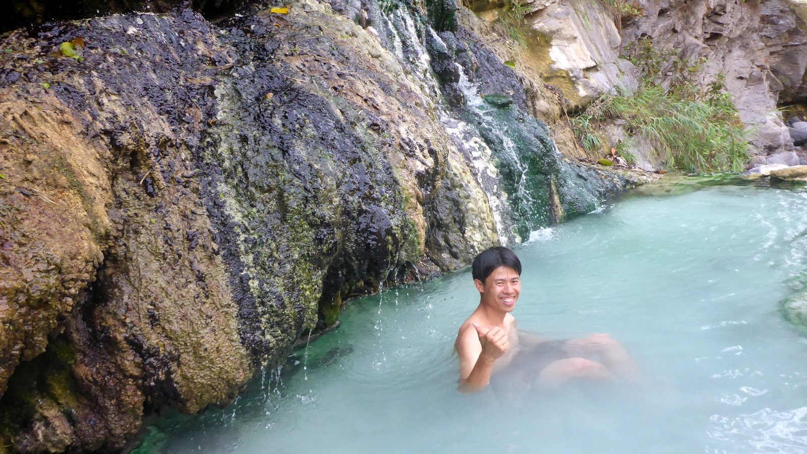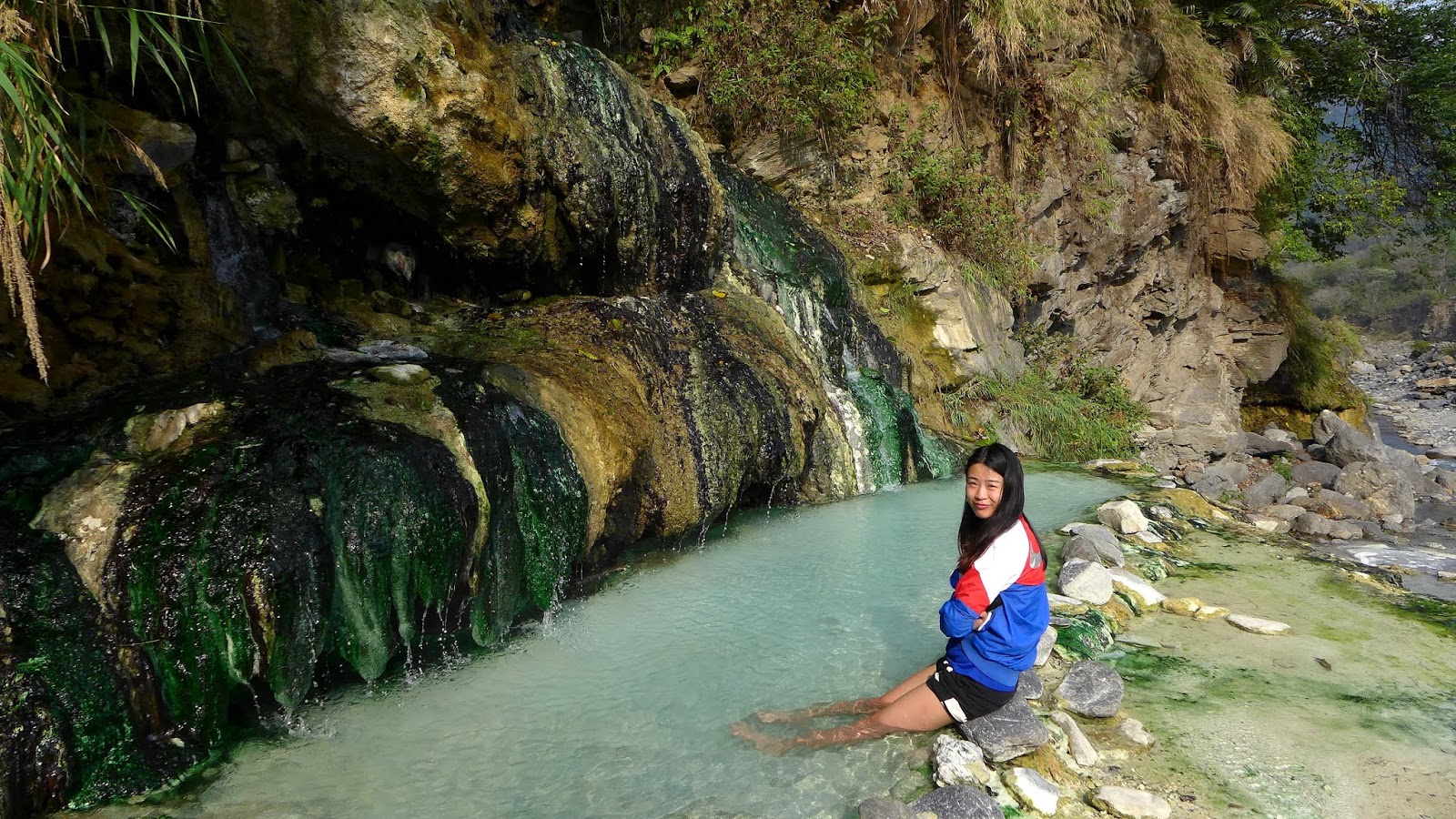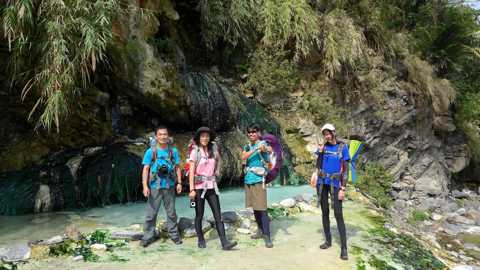 離煮飯時間還早,走了那麼長距離,當然要去好好泡下身子放鬆,溫泉有一處靠岩壁的地方底下溫度反而沒那麼高,真有趣,山壁流下來的水有的燙有的冷,也因為如此剛好調和成可泡的溫度。