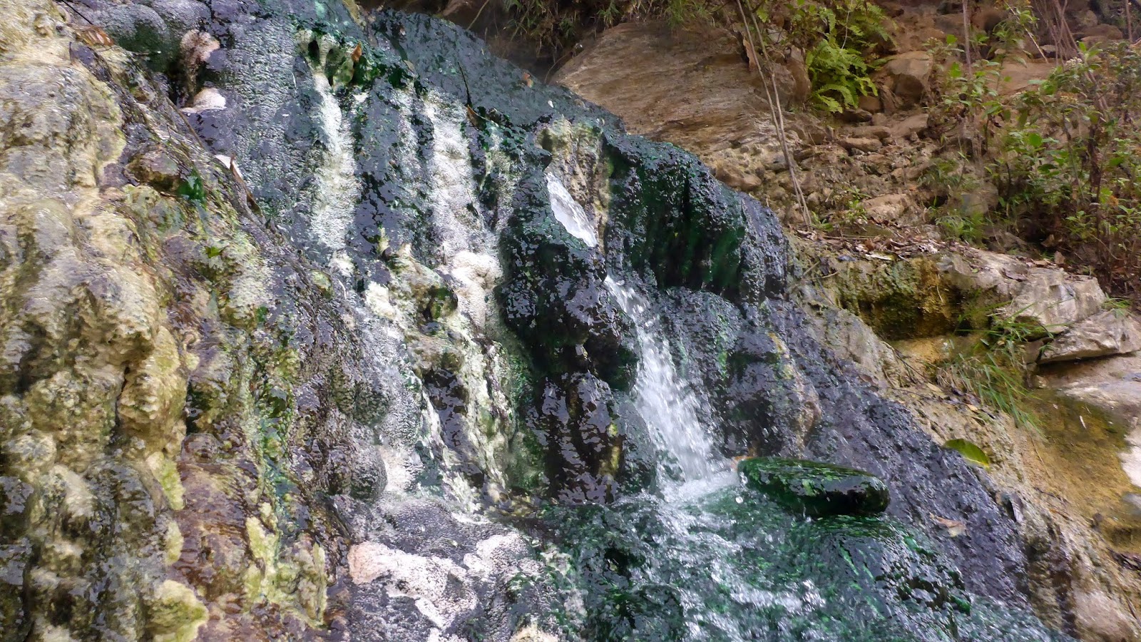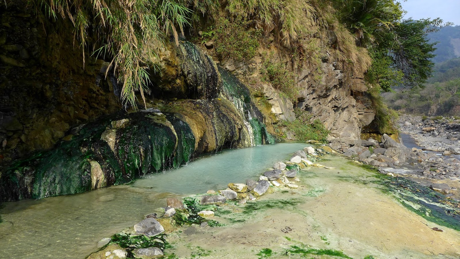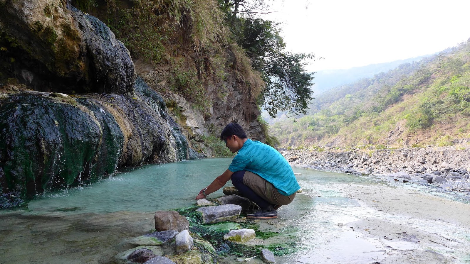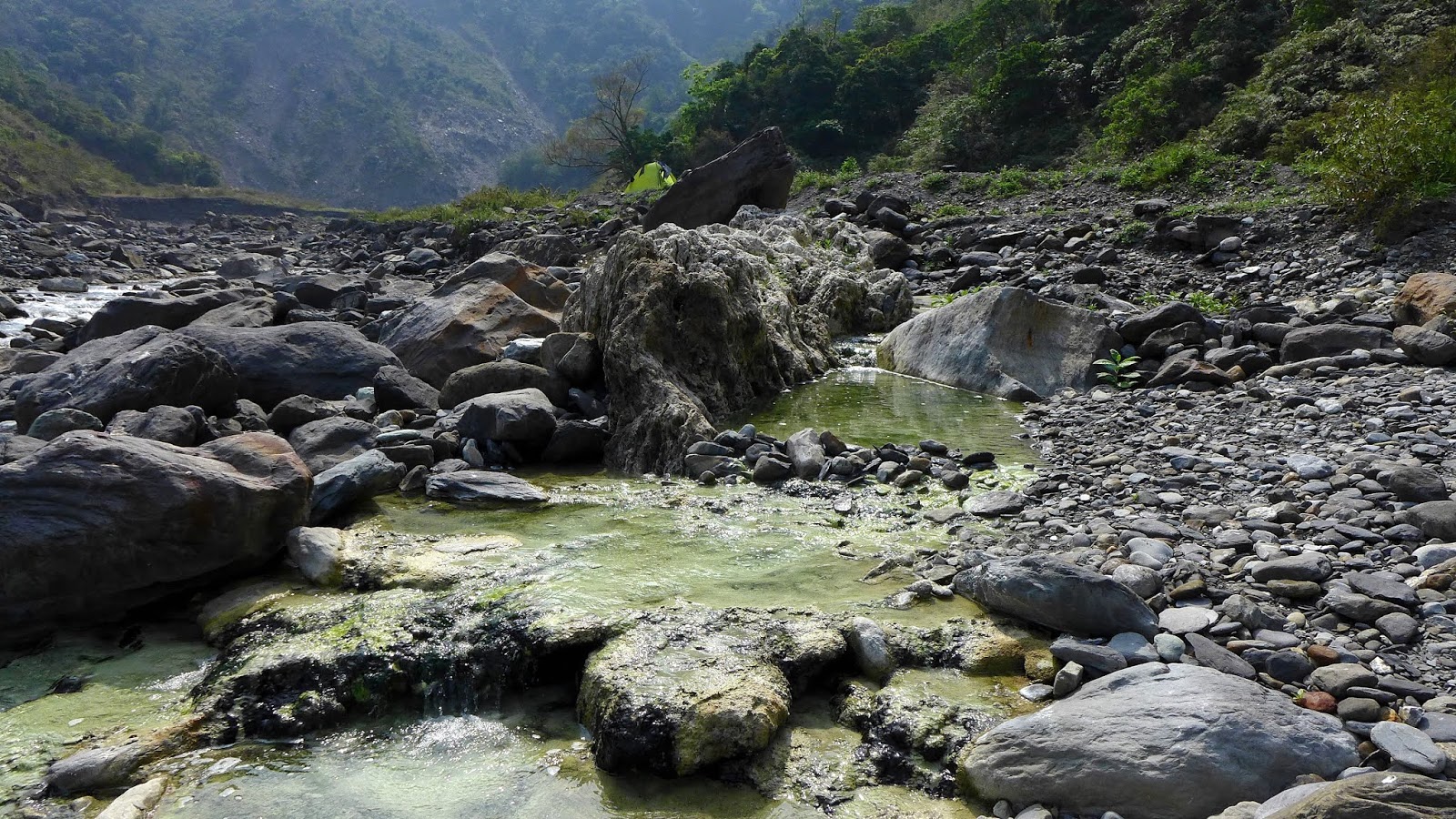 離煮飯時間還早,走了那麼長距離,當然要去好好泡下身子放鬆,溫泉有一處靠岩壁的地方底下溫度反而沒那麼高,真有趣,山壁流下來的水有的燙有的冷,也因為如此剛好調和成可泡的溫度。