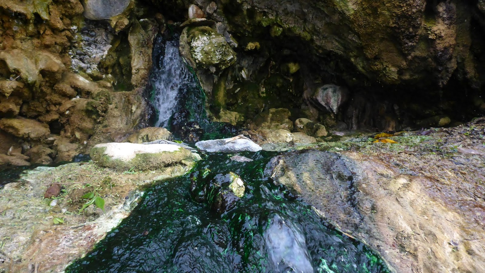 看到一處顏色不同的岩壁,碰一下水是冷的
