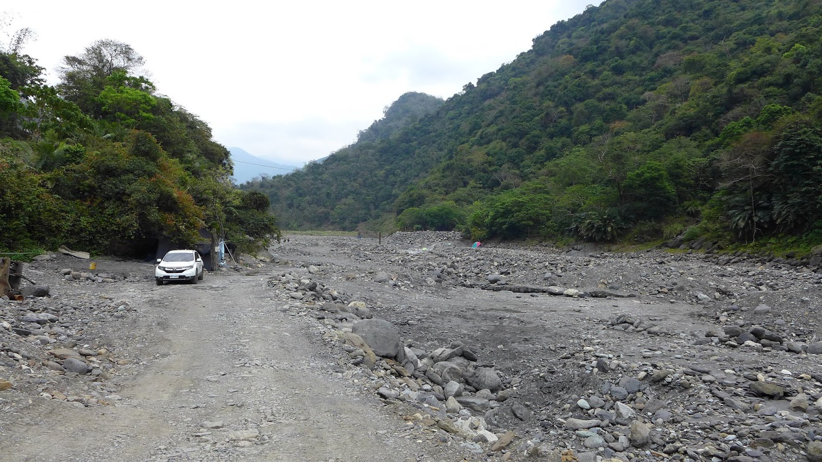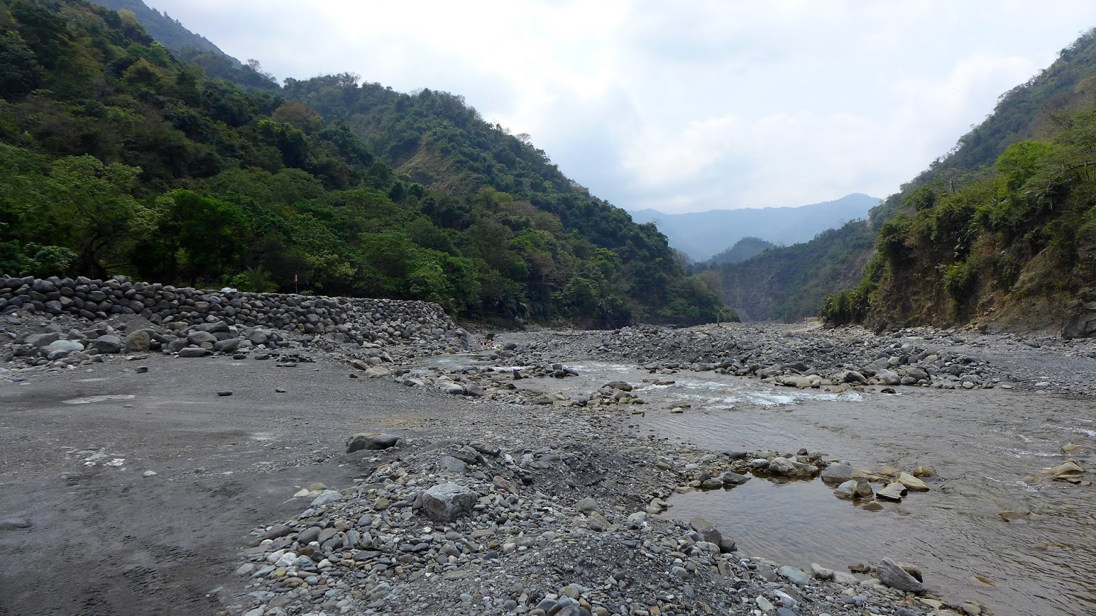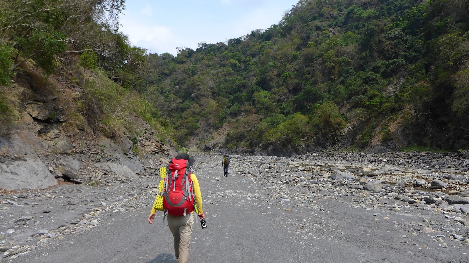 歷經莫拉克風災後,整個南部許多溪谷因土石大量沖刷而下,整個河床至少被墊高好幾公尺以上,這一段路的景色大致沒什麼變化,就是特大的寬河床,一路前進聊天,不久還追上一組人馬。