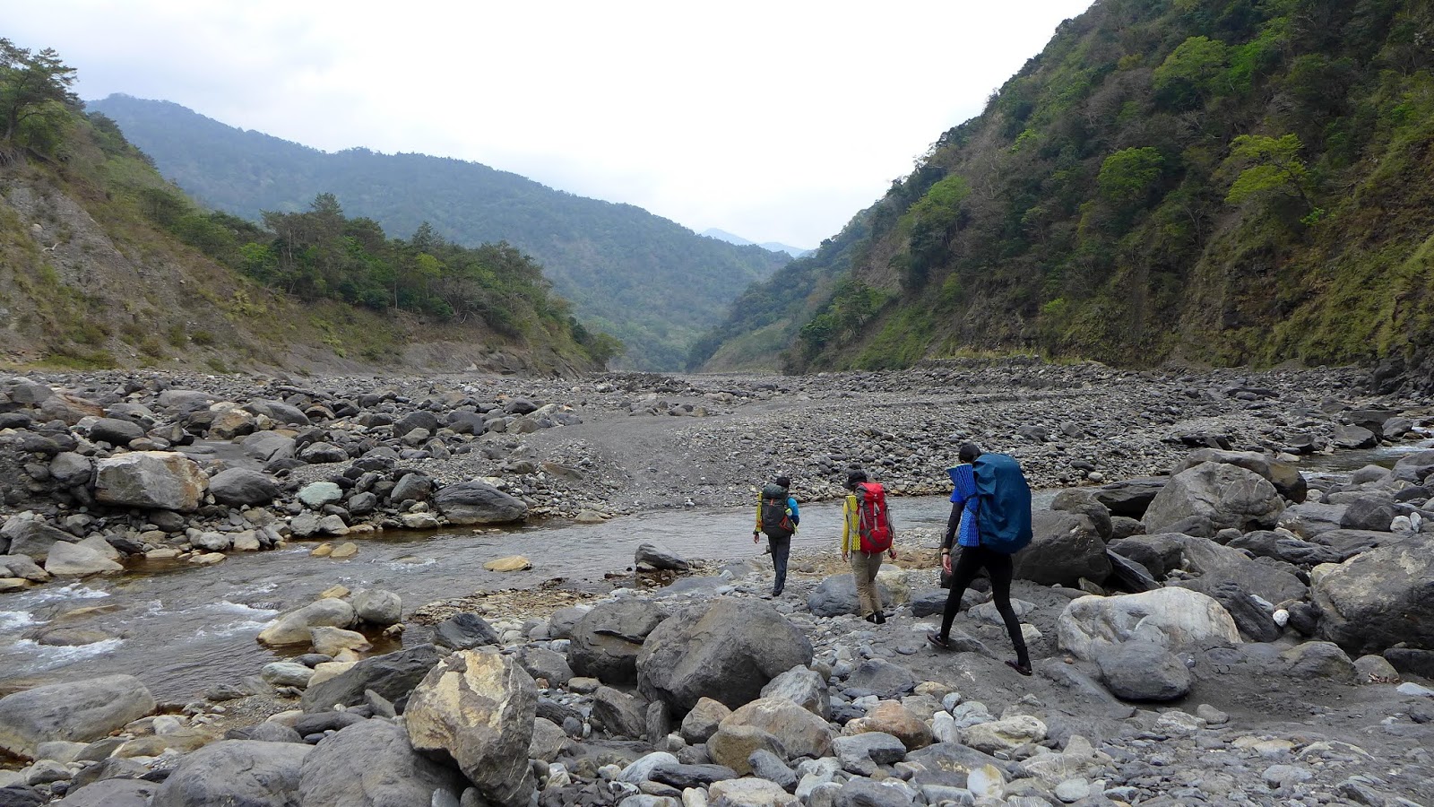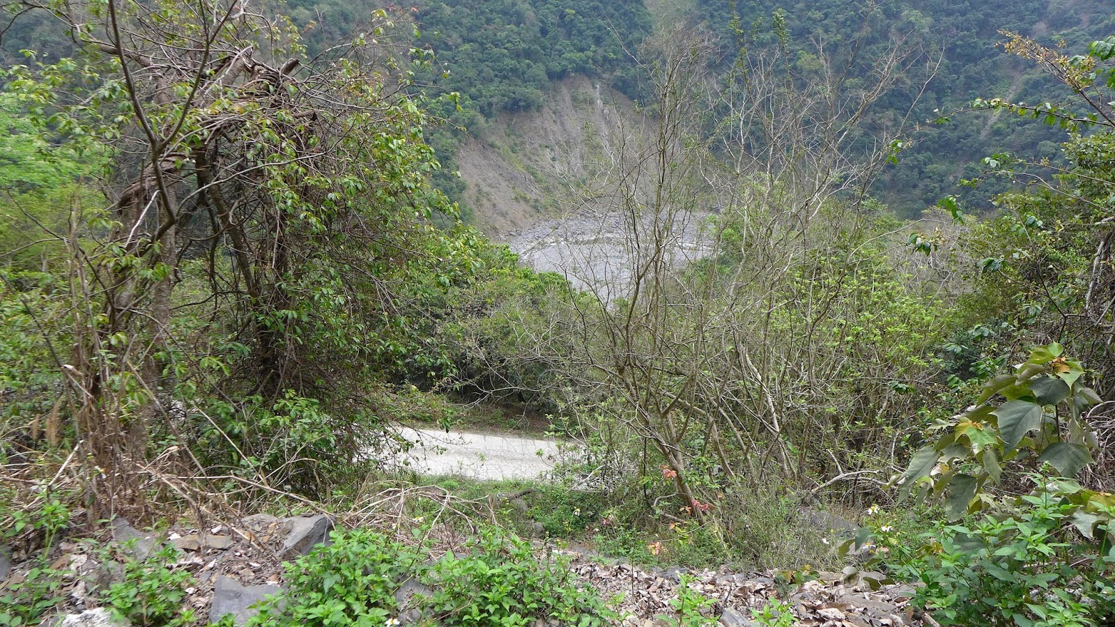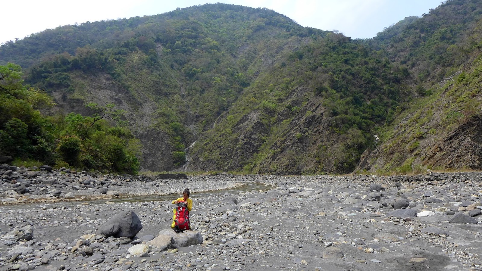 歷經莫拉克風災後,整個南部許多溪谷因土石大量沖刷而下,整個河床至少被墊高好幾公尺以上,這一段路的景色大致沒什麼變化,就是特大的寬河床,一路前進聊天,不久還追上一組人馬。