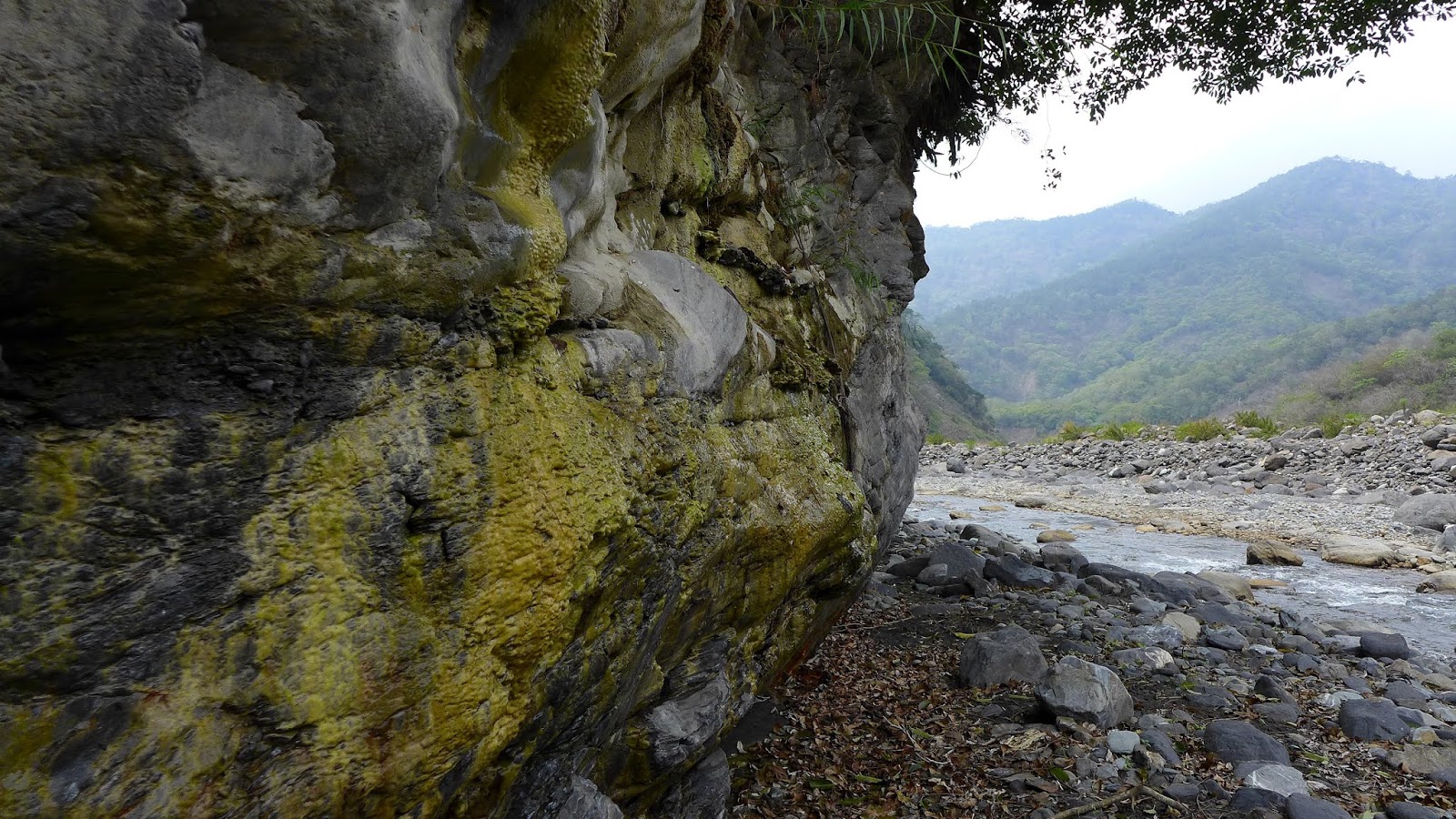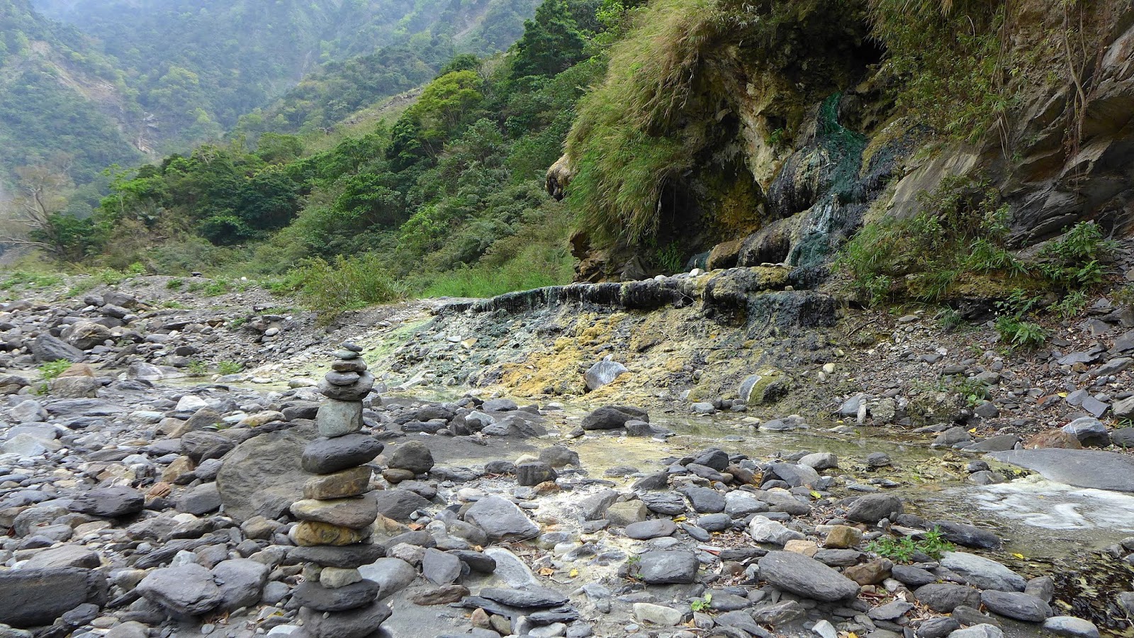 彩壁不錯看,不過水不是溫的,再往前一點才是十坑溫泉的主露頭,看到一串高高的疊石就表示到了。