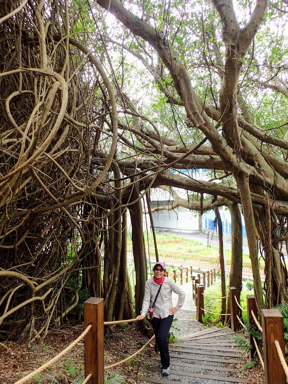 一旁的階梯往上, 兩旁的樹幹枝枒好像拱門般交錯著, 相當的奇特