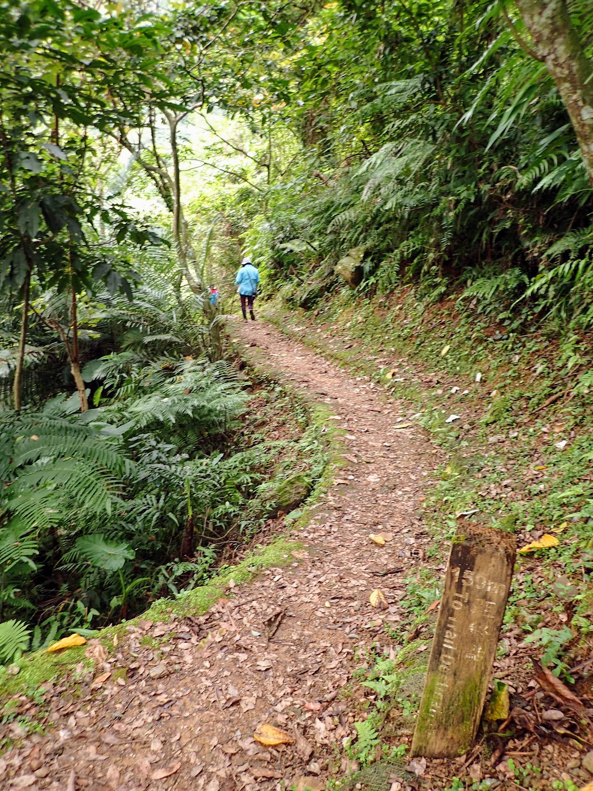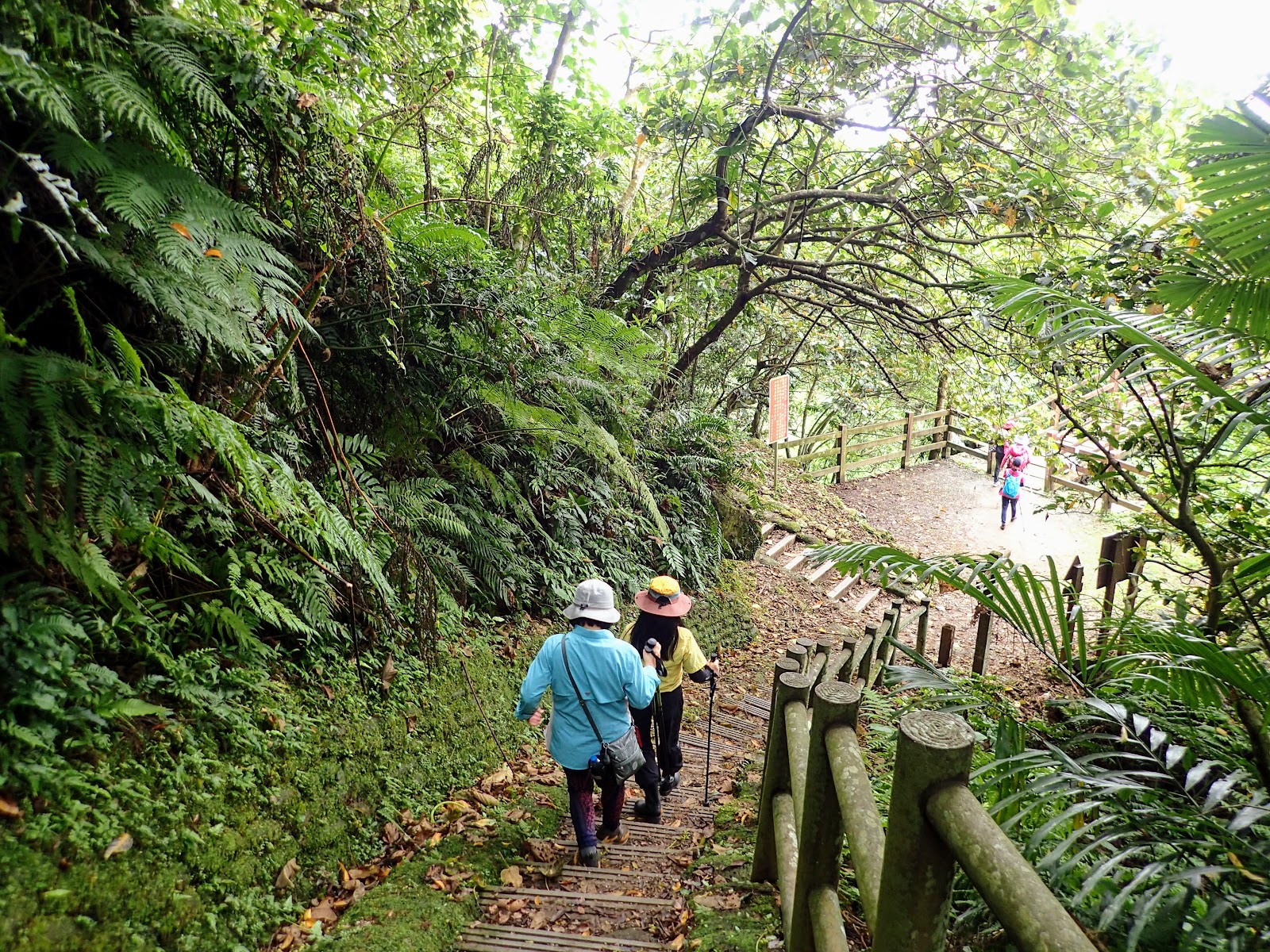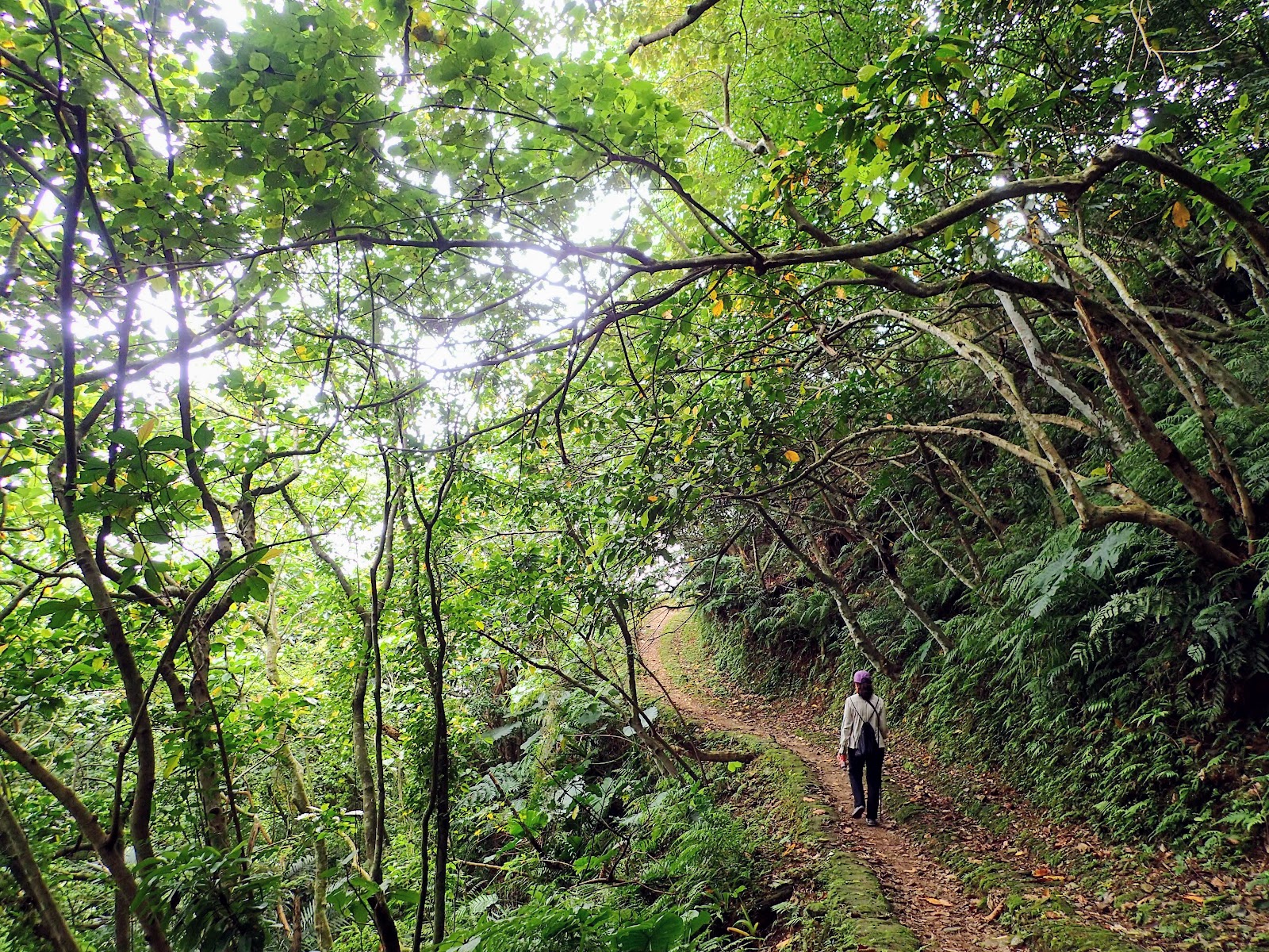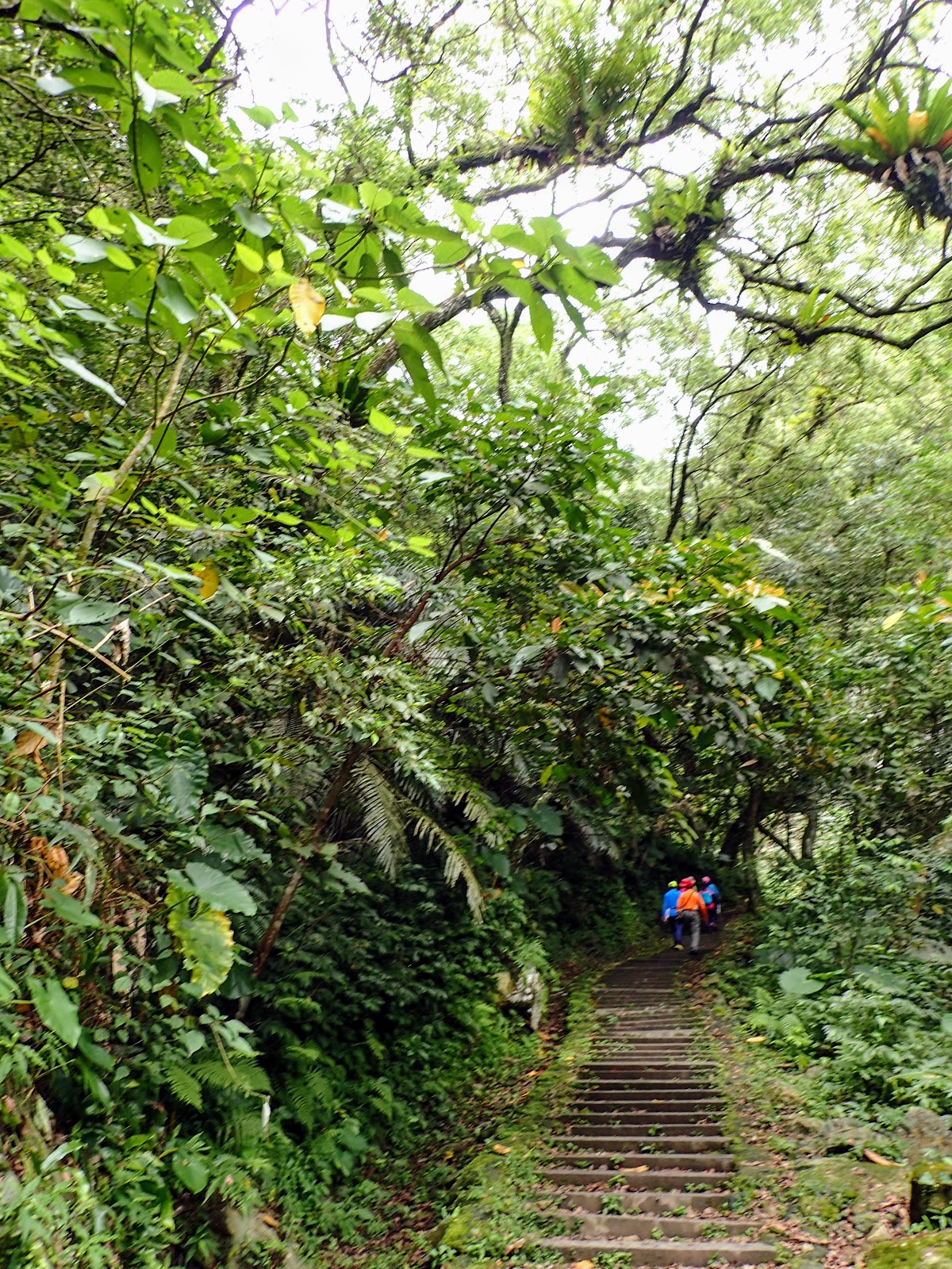 階梯低緩好走, 兩旁長滿綠色植物, 好像走進綠色隧道般