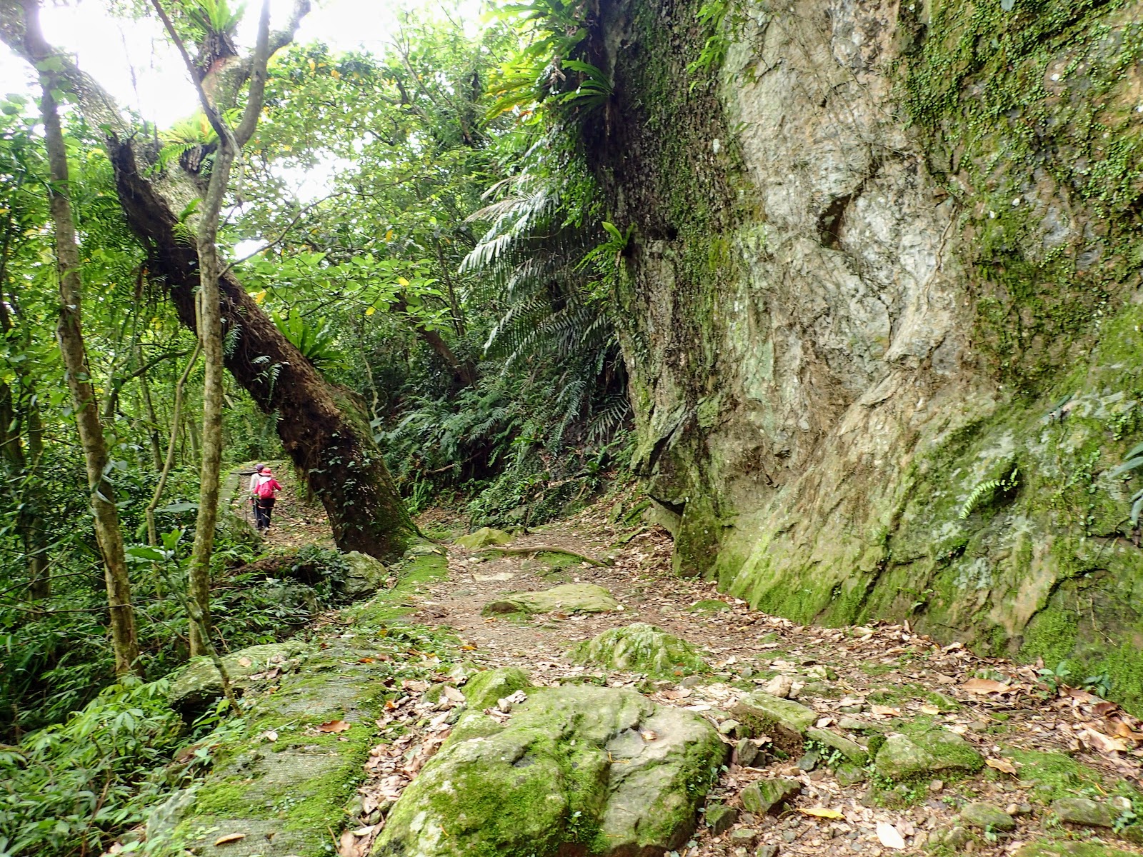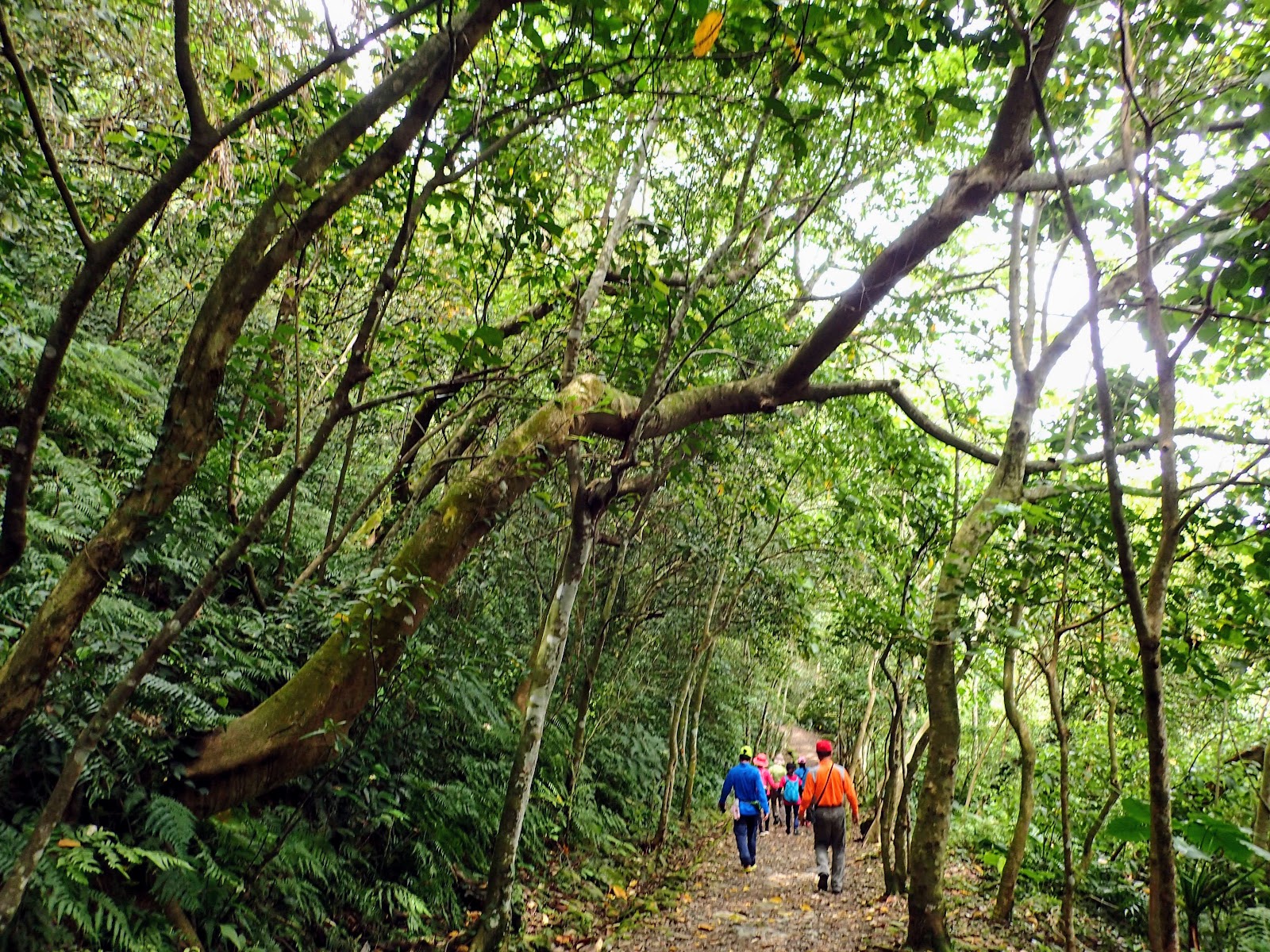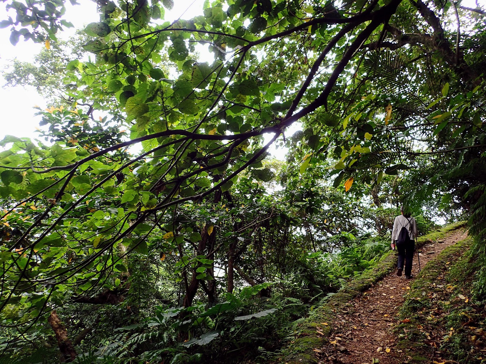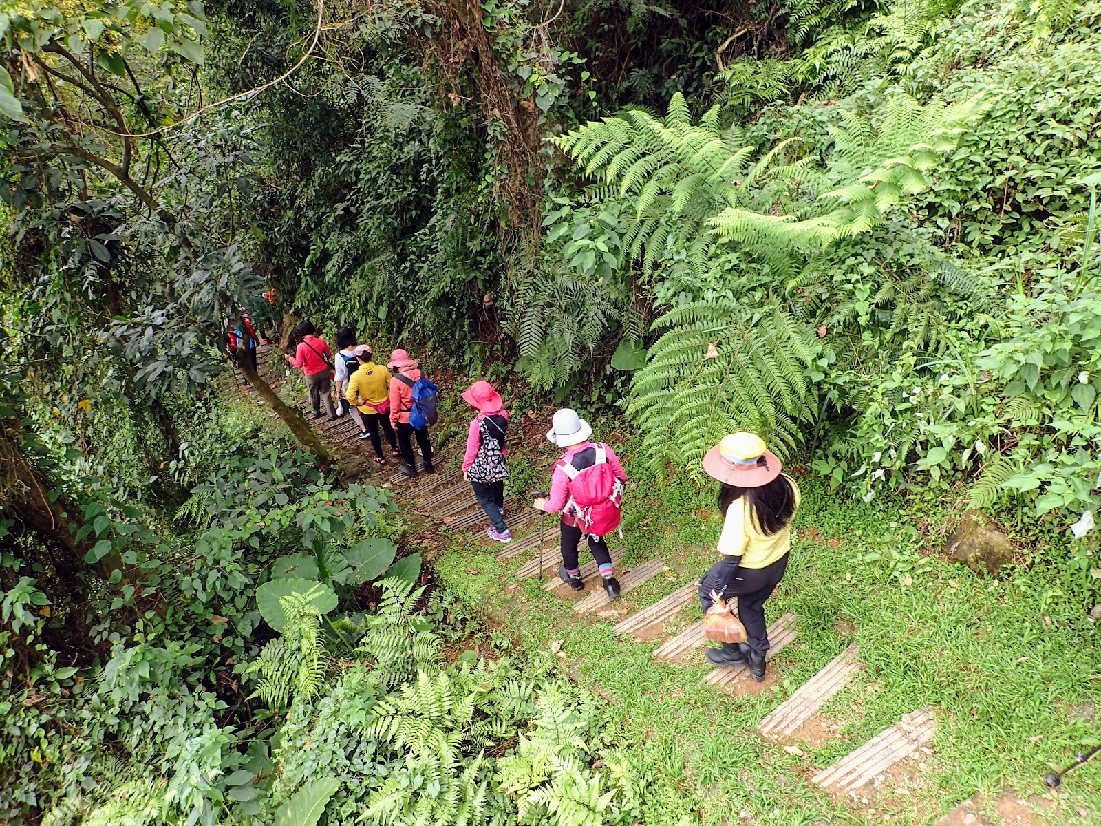 階梯低緩好走, 兩旁長滿綠色植物, 好像走進綠色隧道般
