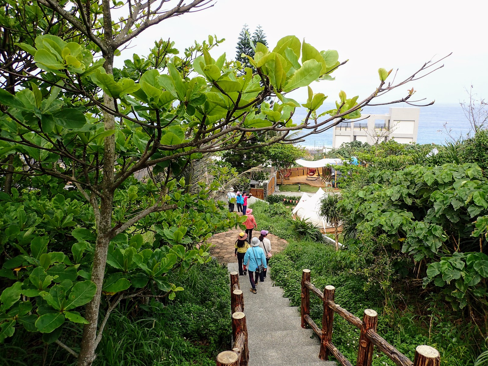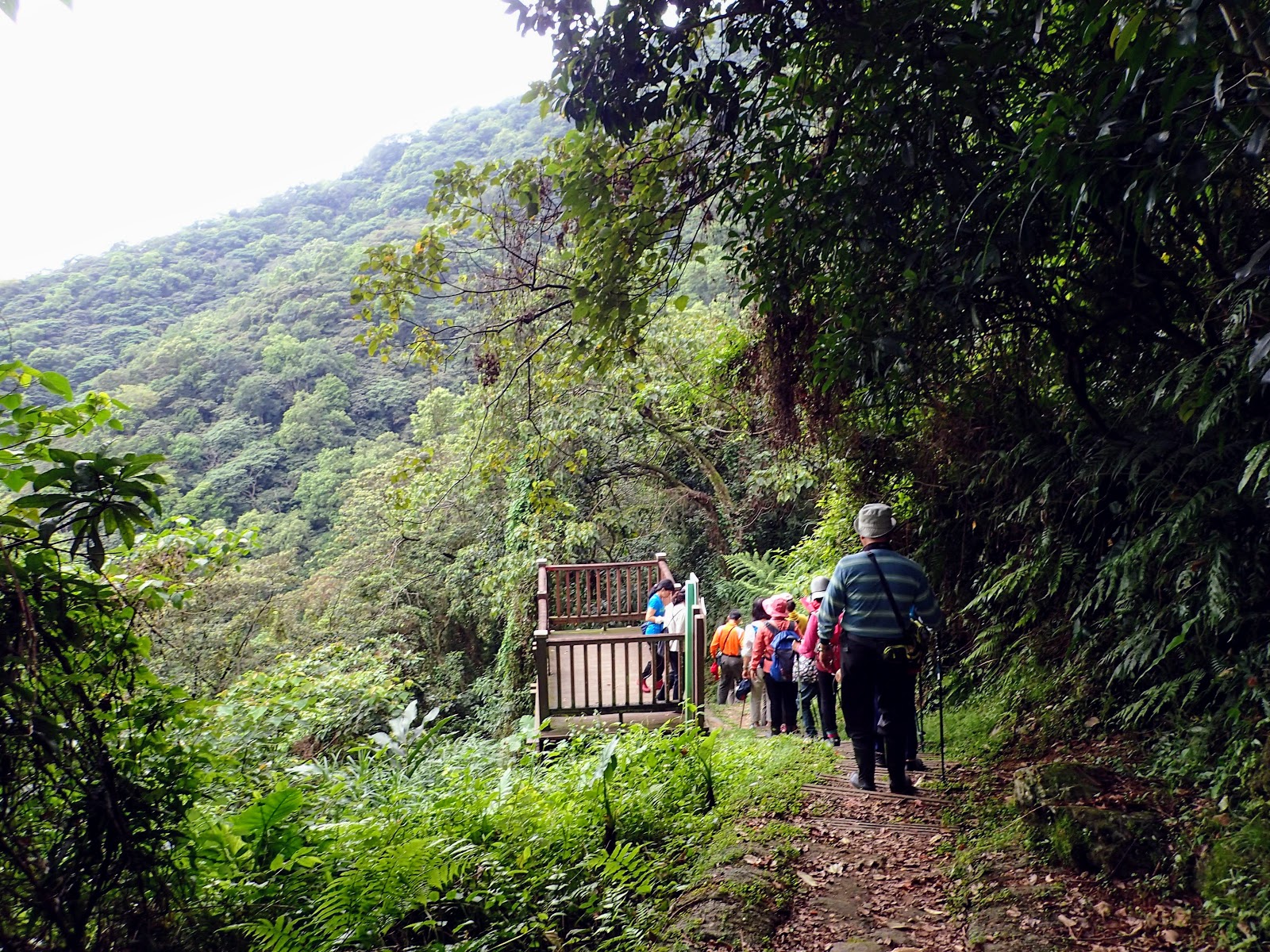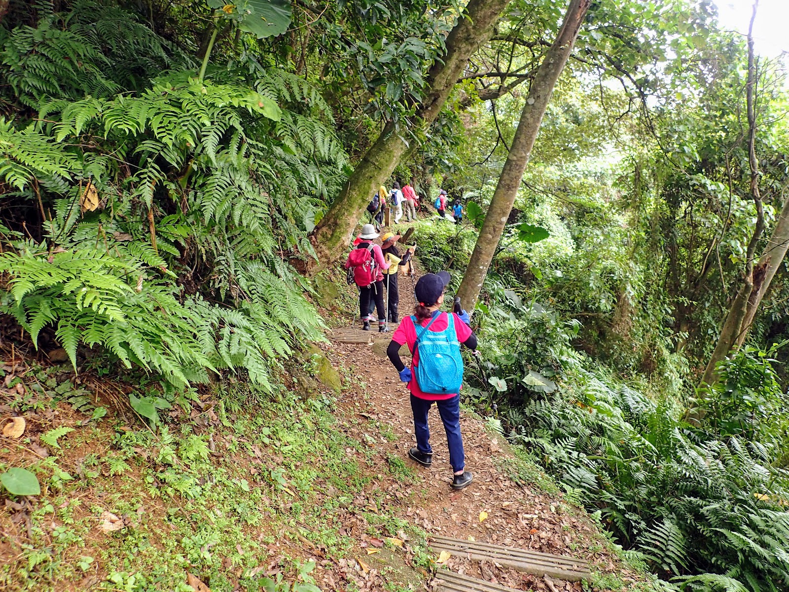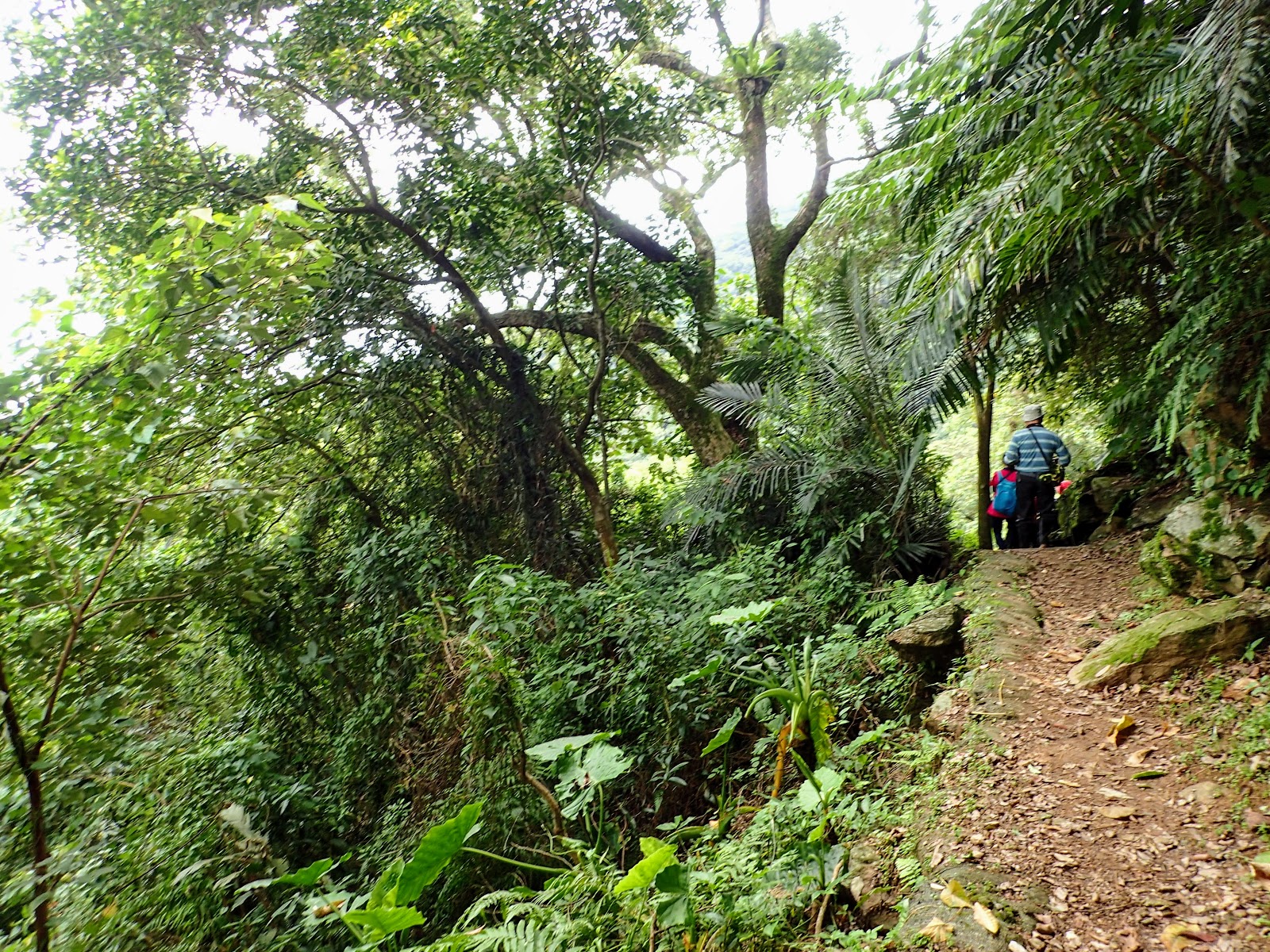 階梯低緩好走, 兩旁長滿綠色植物, 好像走進綠色隧道般