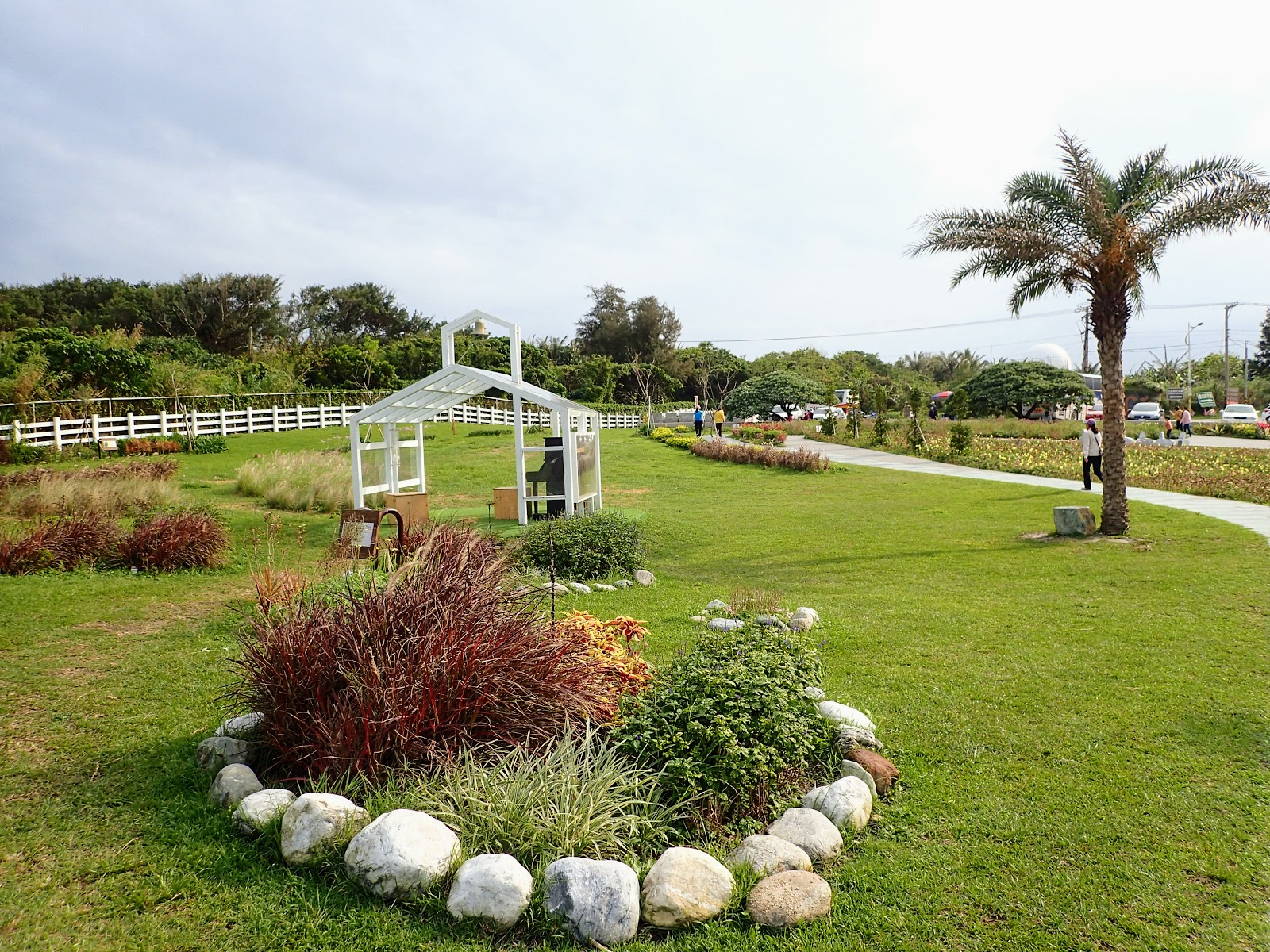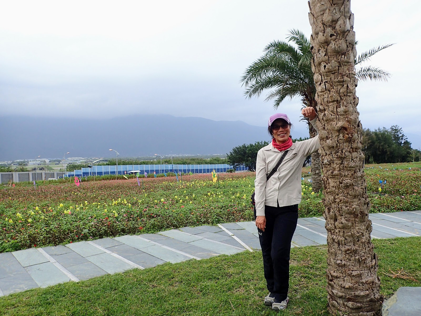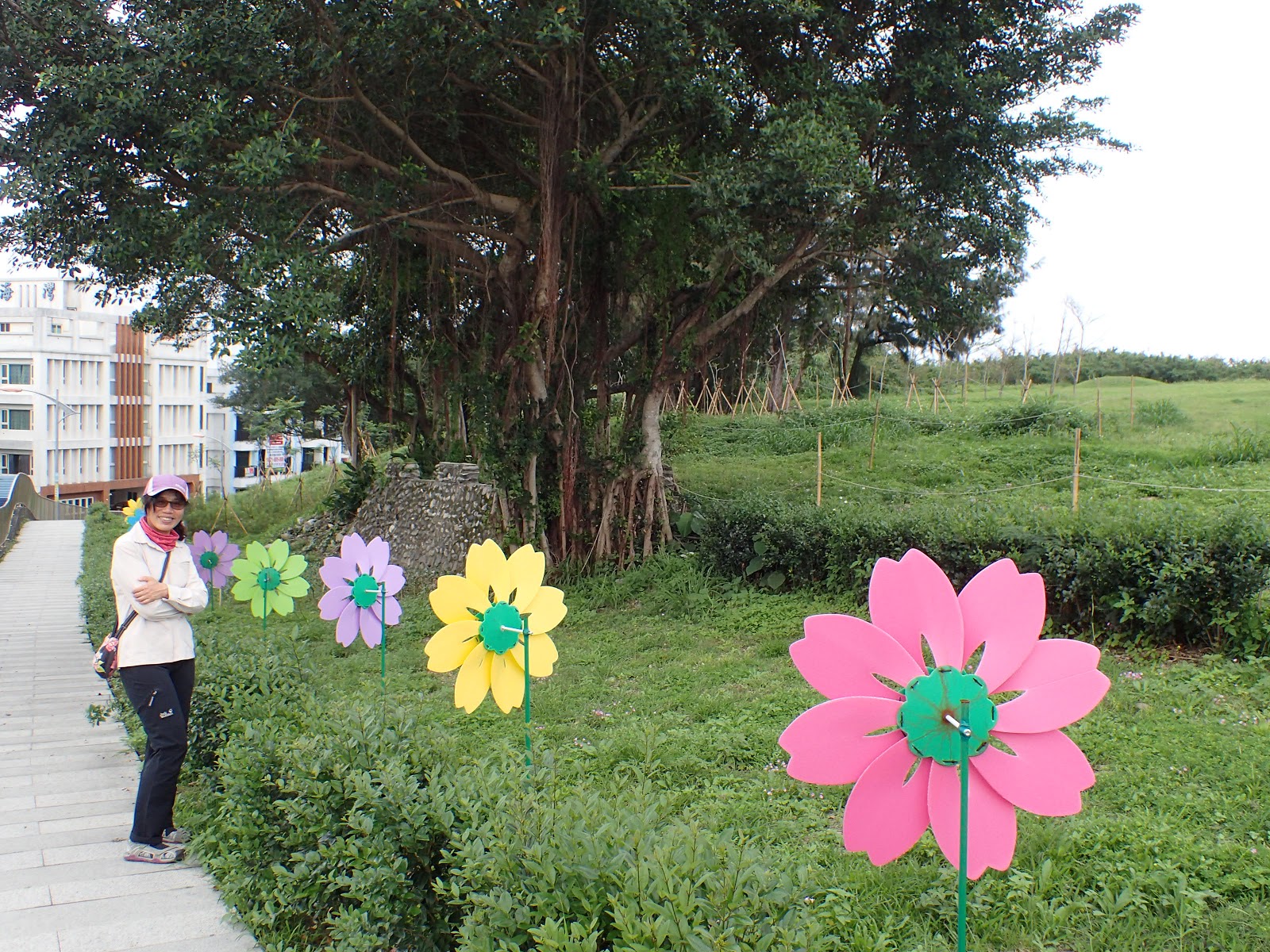 沿著彩色花型風車步道