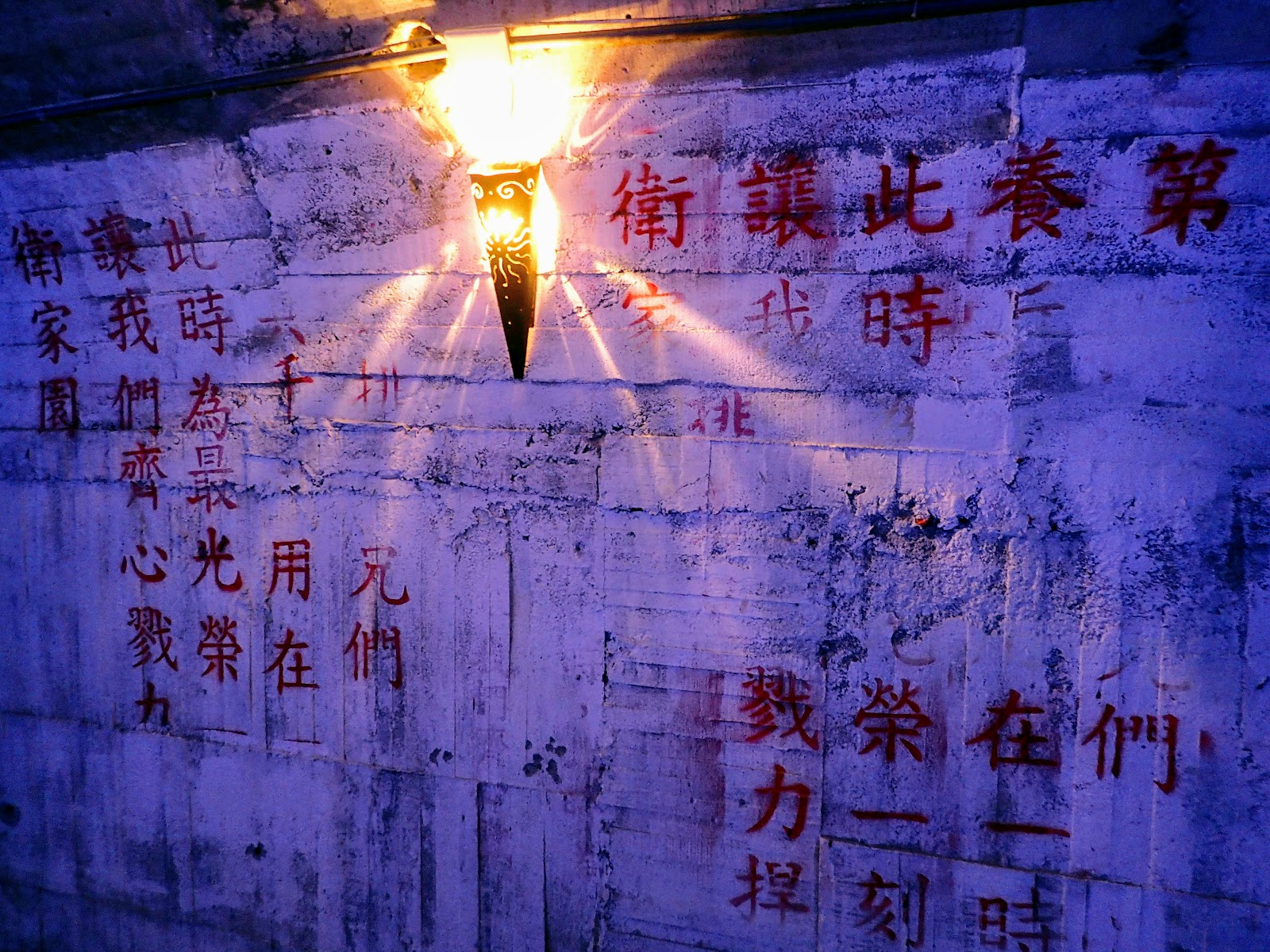 坑道內保留著紅色的精神標語