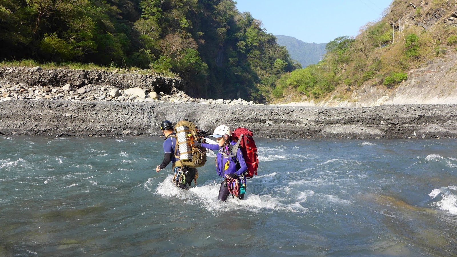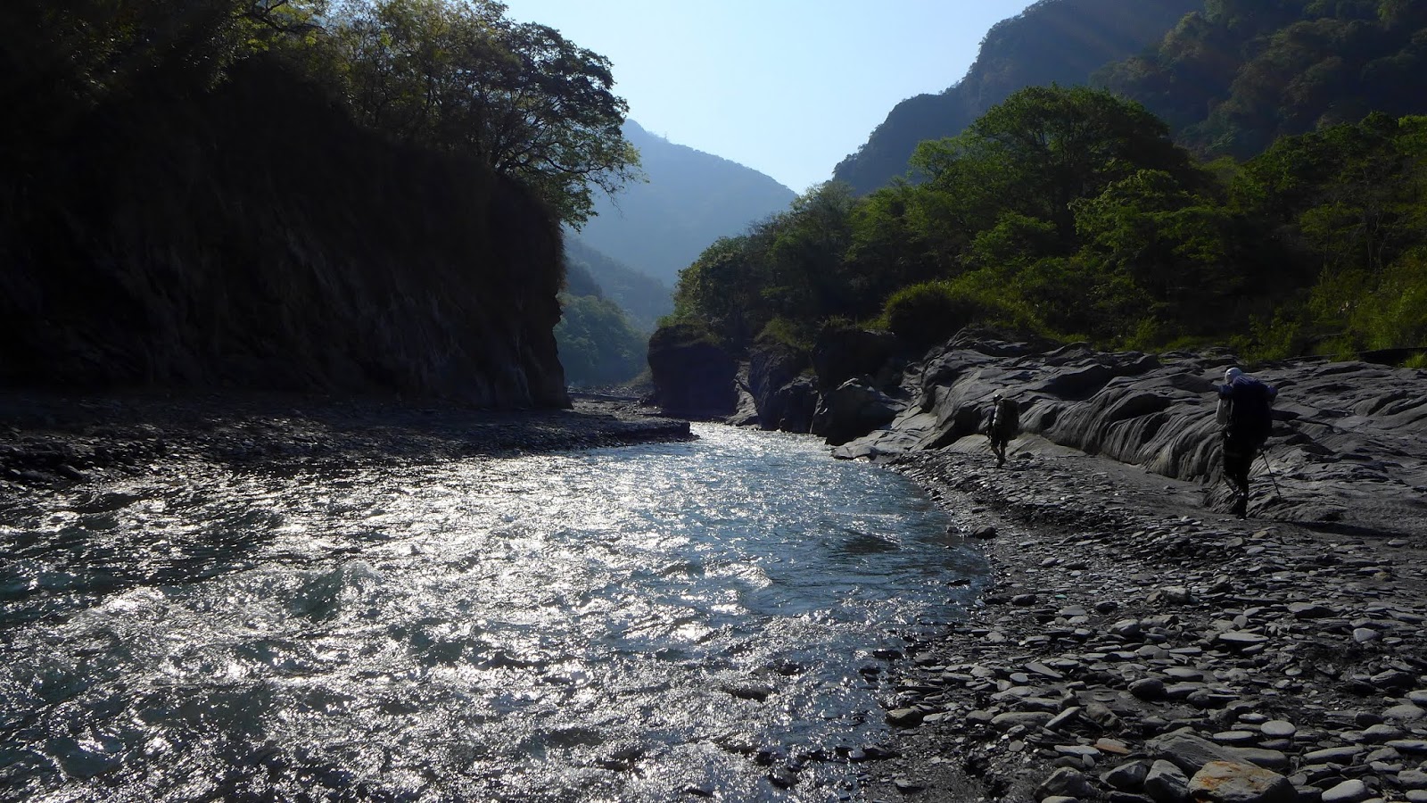與郡大溪匯流後,發現水流比昨天來得大一些,渡溪難度有變高一些,還好尚能應付,加上還記得一些可以高繞的路段減少過溪次數,速度不至於掉太多。
