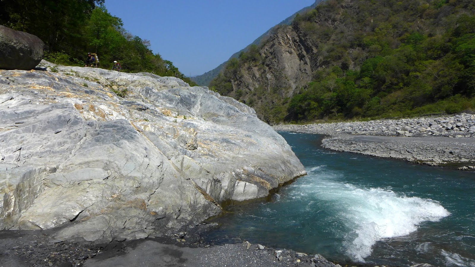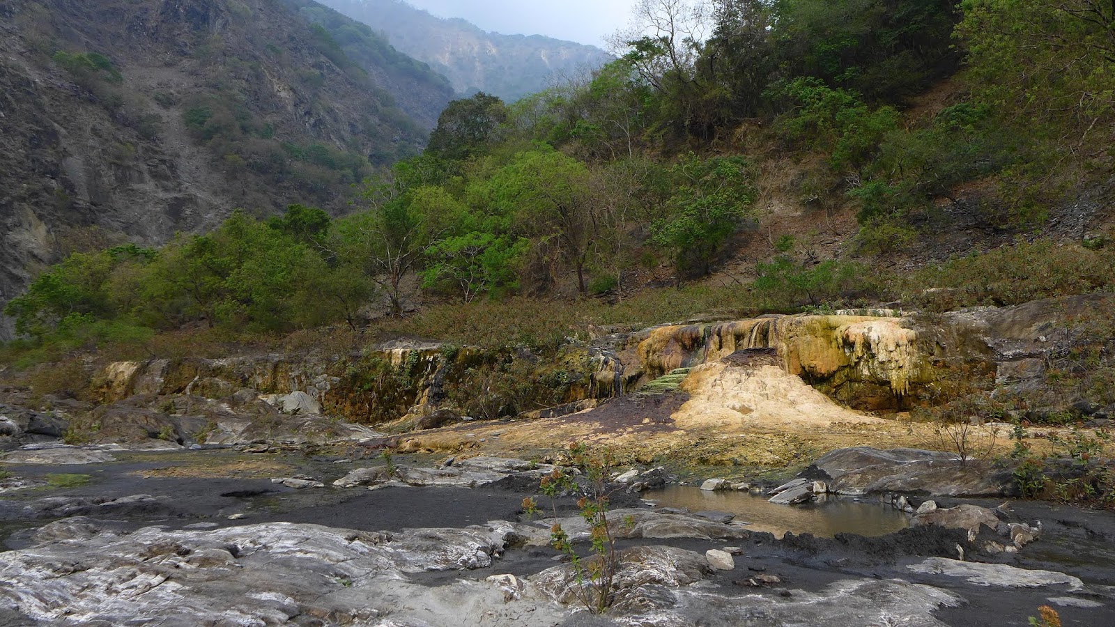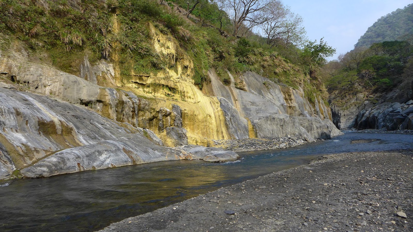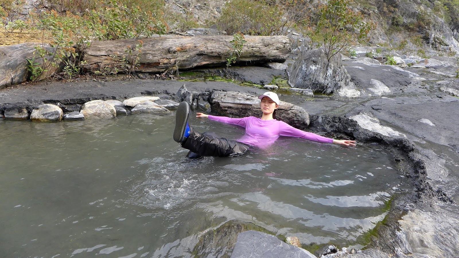 續行再轉為較寬河床,沿途有許多溫泉露頭