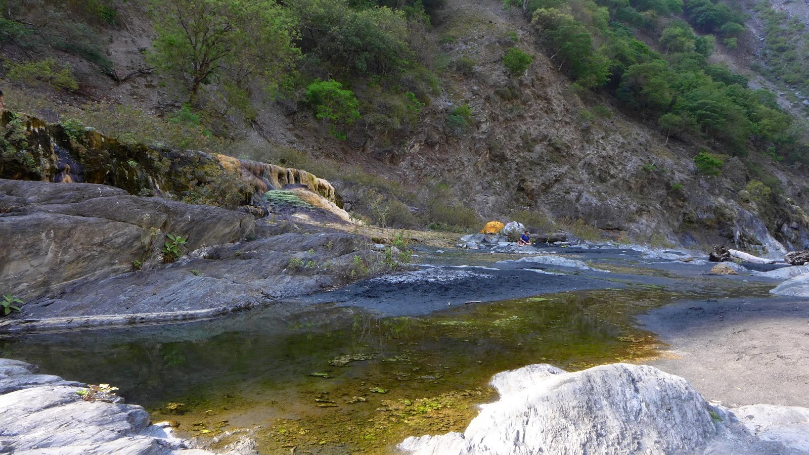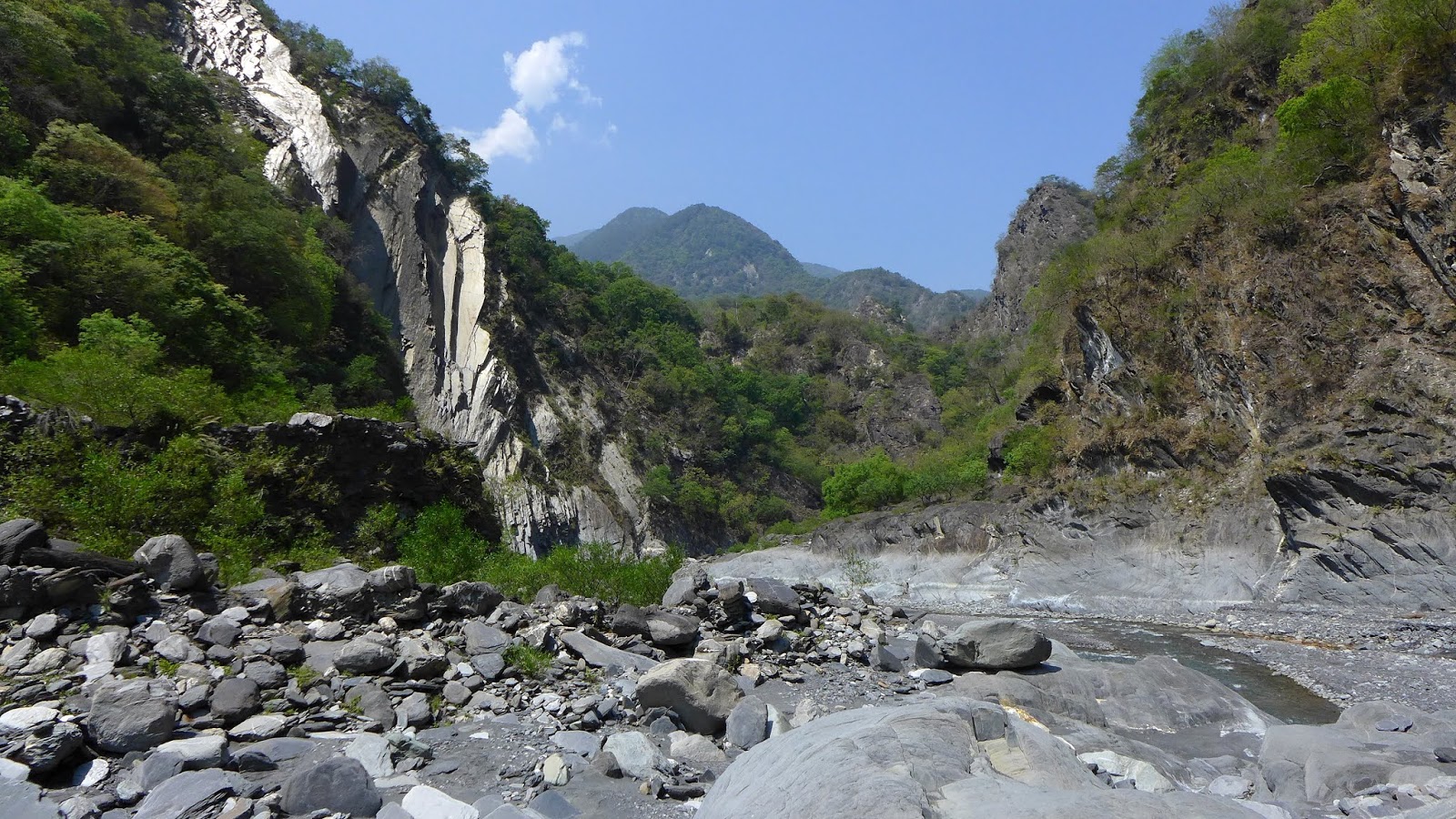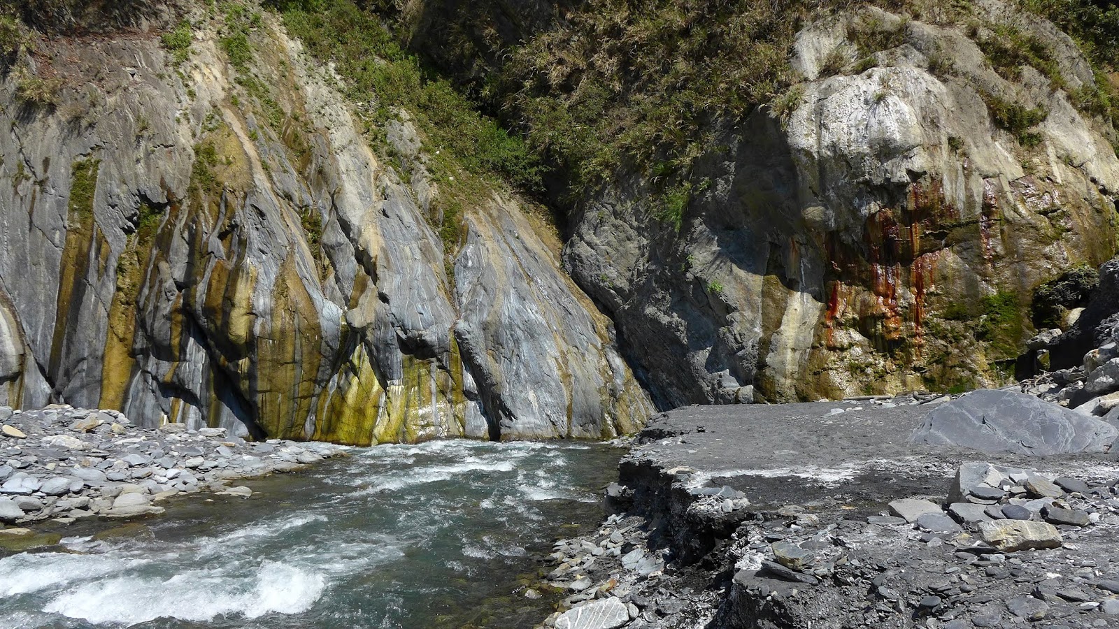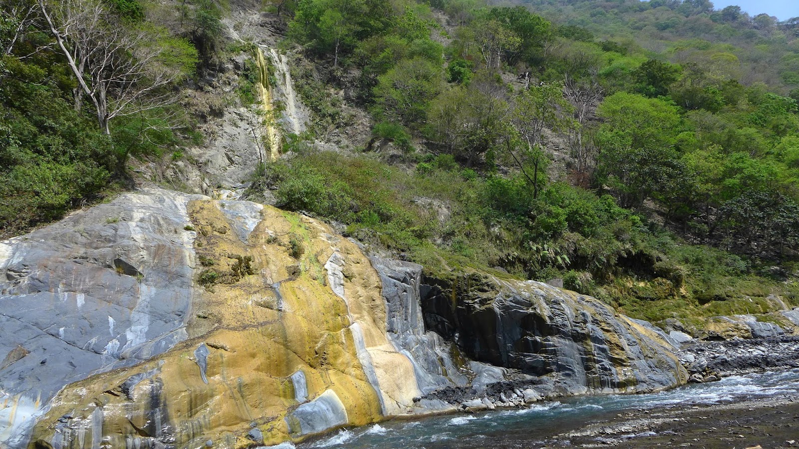 續行再轉為較寬河床,沿途有許多溫泉露頭