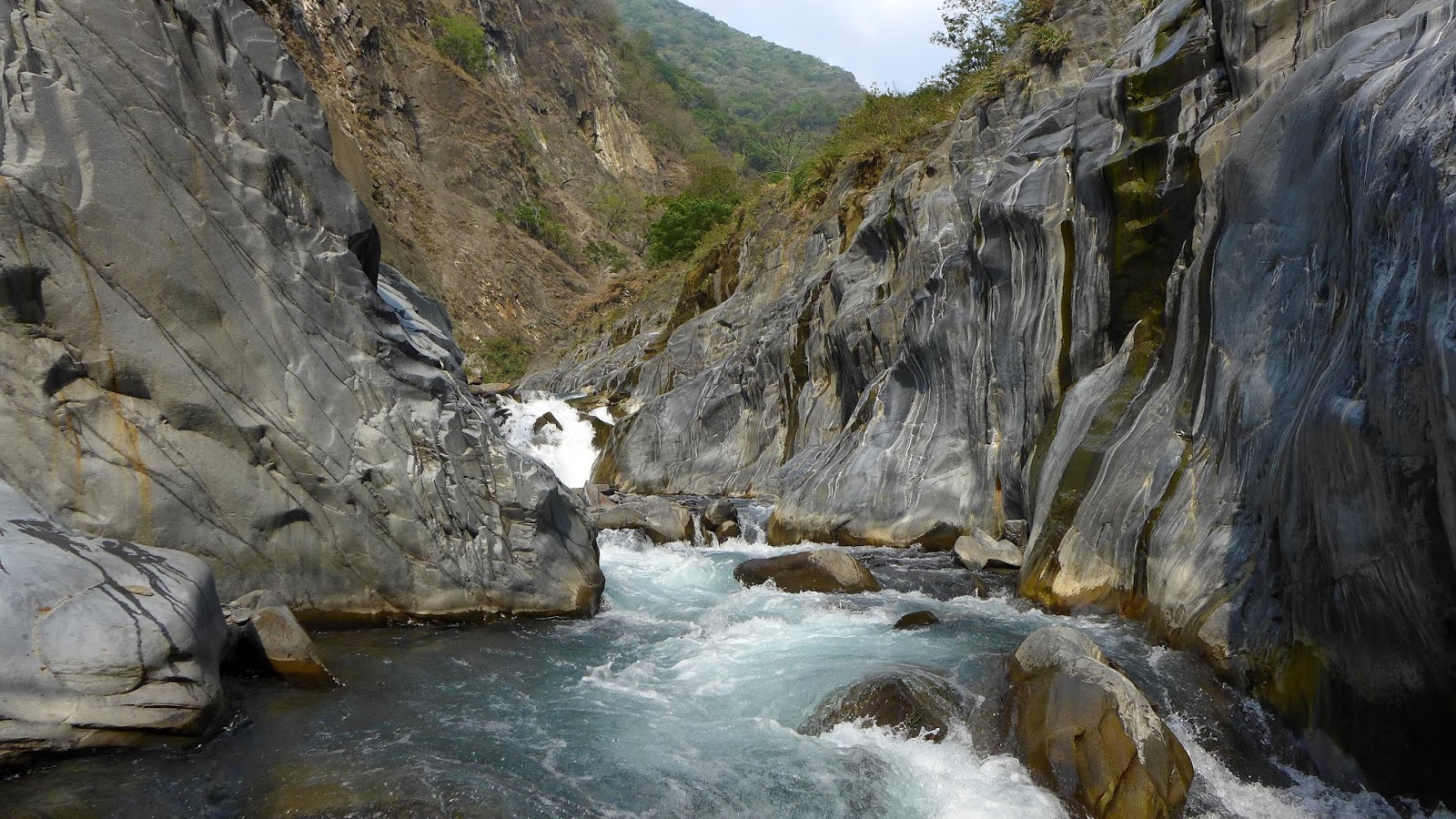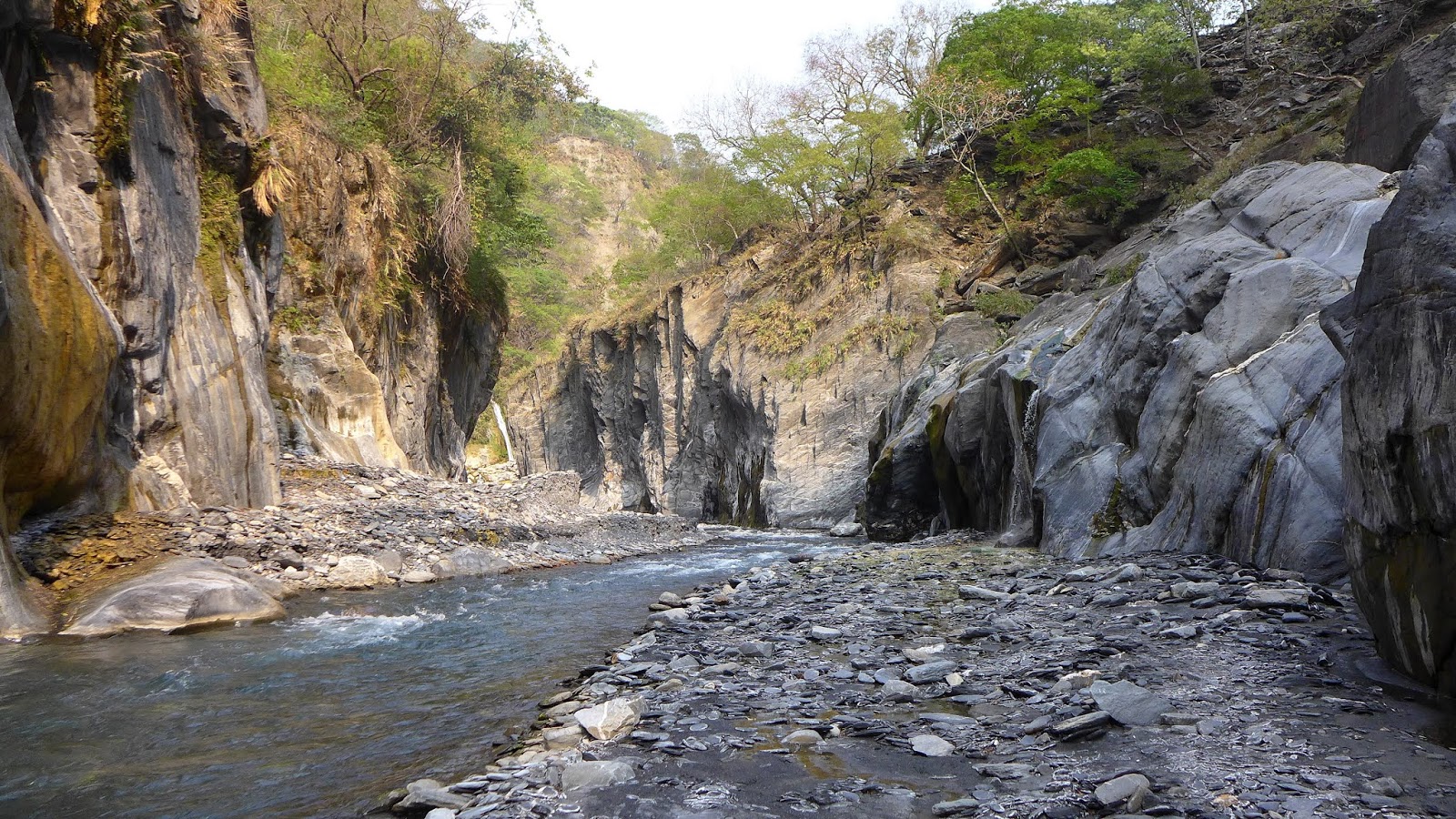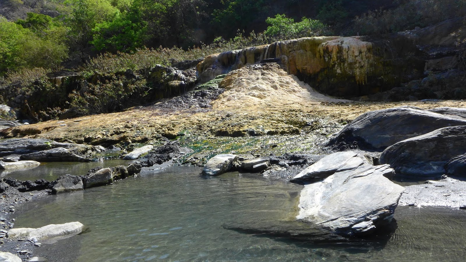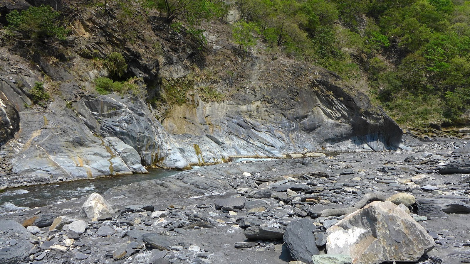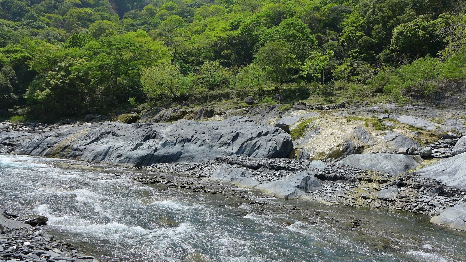 續行再轉為較寬河床,沿途有許多溫泉露頭