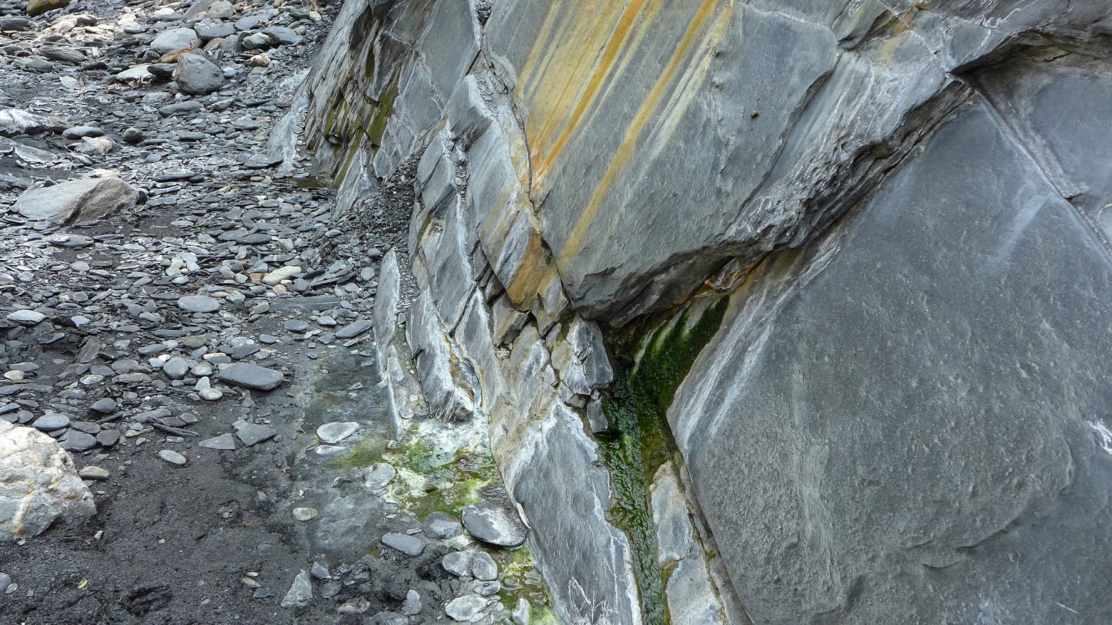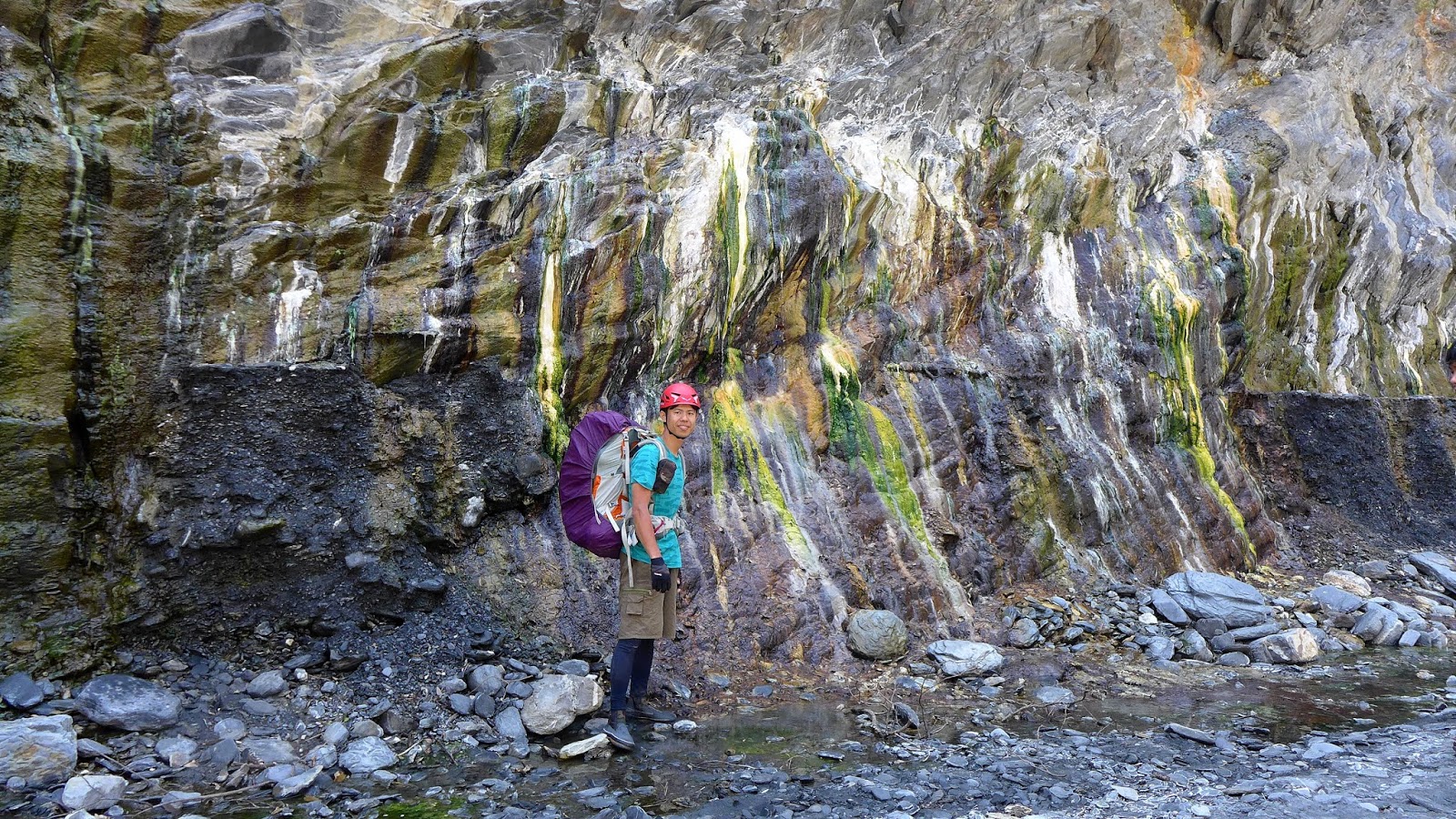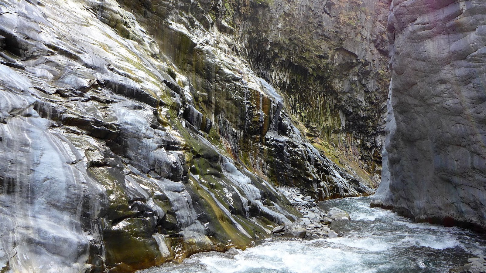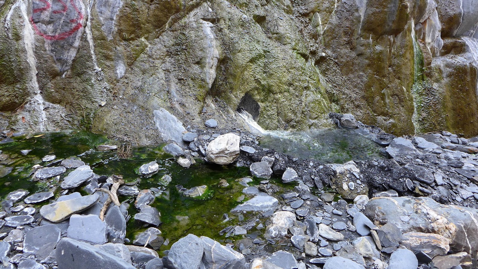 續行再轉為較寬河床,沿途有許多溫泉露頭