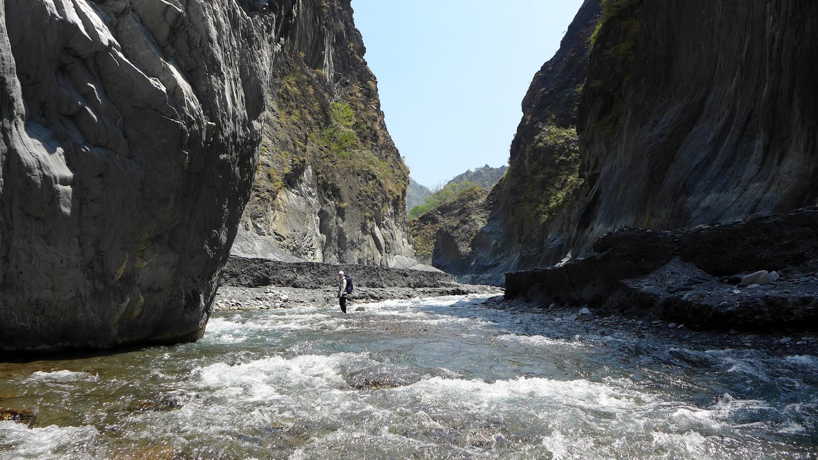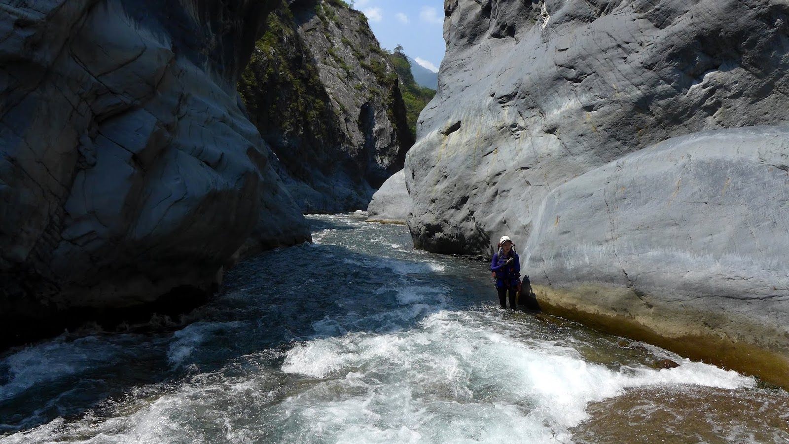 這一公里峽谷只要水量大一點,難度就完全不是現在這一回事,不過我想水量真的大的話,應該一開始就直接被拒於門外了,哪有辦法到這,而在裡頭天候若沒注意,遇到溪水暴漲則是完全沒有逃生可能,出發的天候資訊要非常注意。