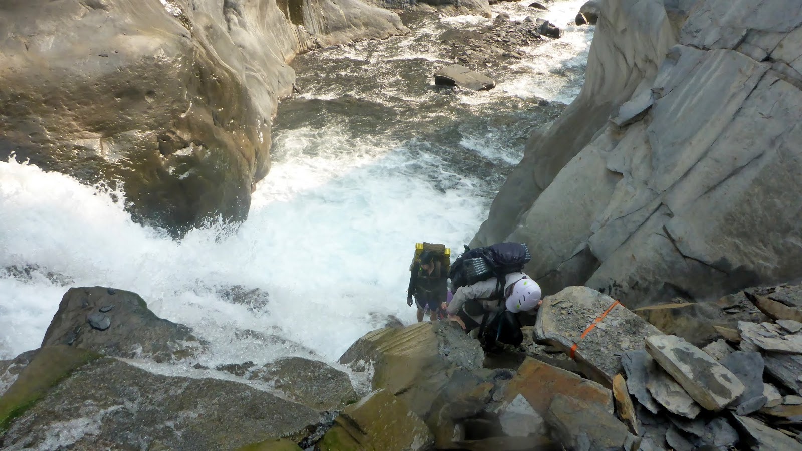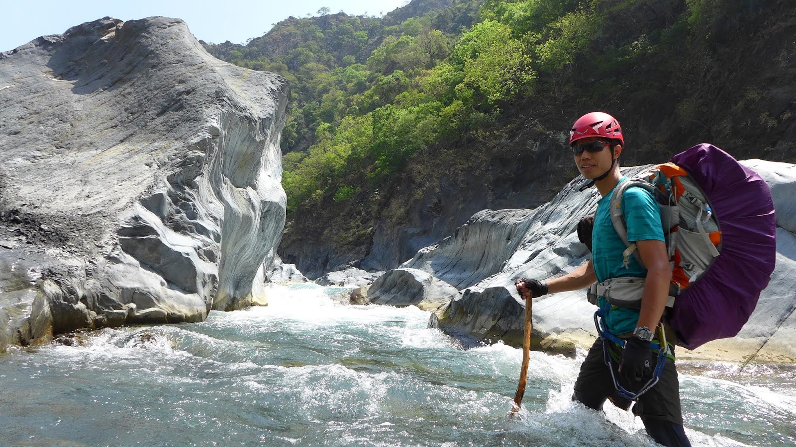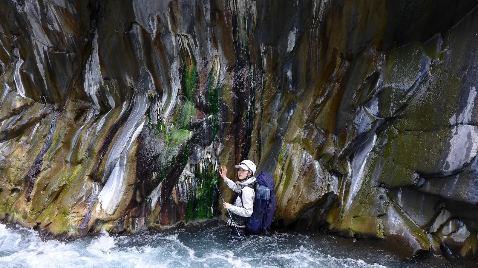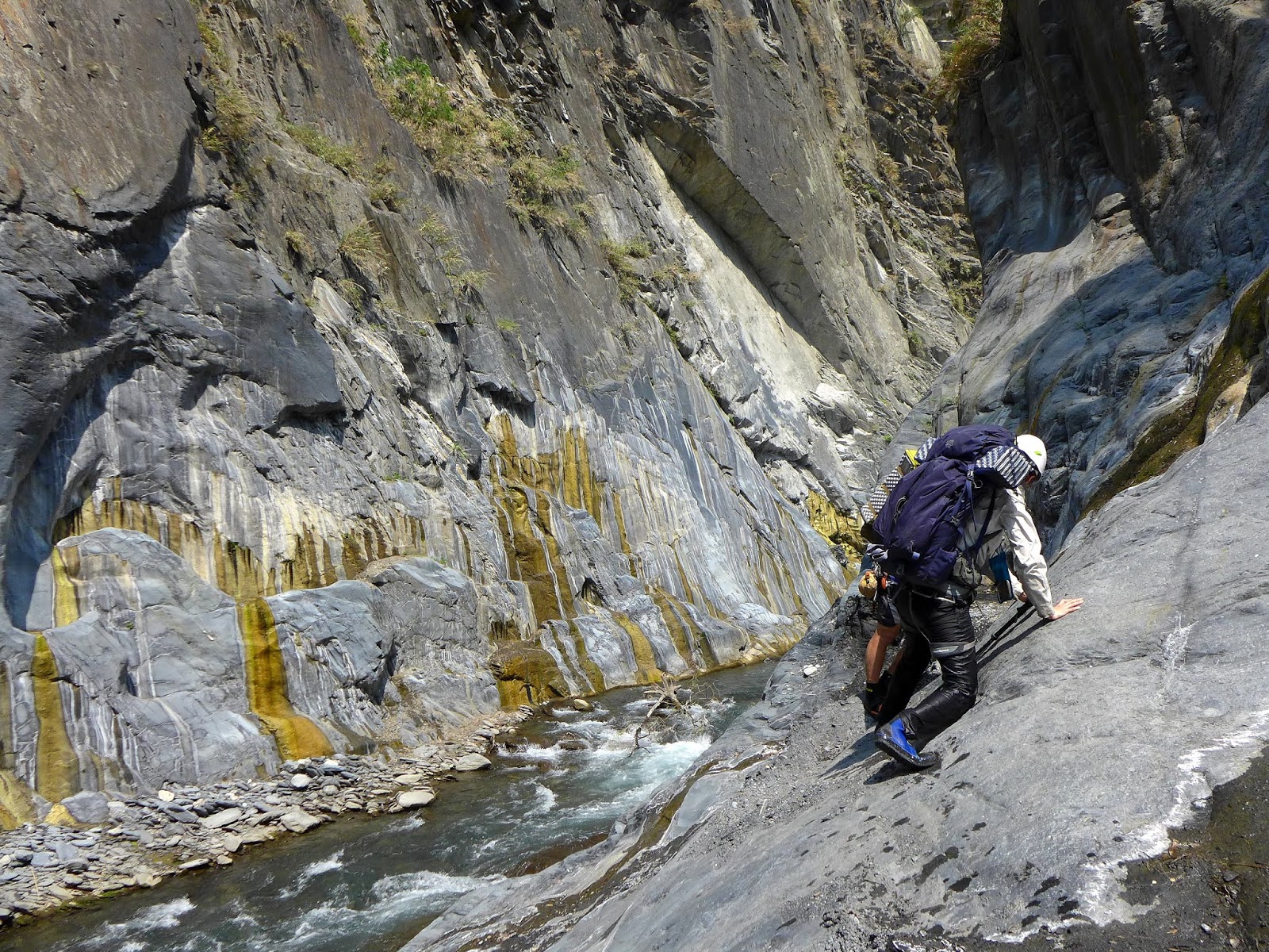一開始還想說不下水高繞,不過有一處不好攀爬,最後我成功爬過去,不過......最終還是有一段不下水不行,因為背大背包不好游,我先過去後拋繩讓後面隊友拉過來。