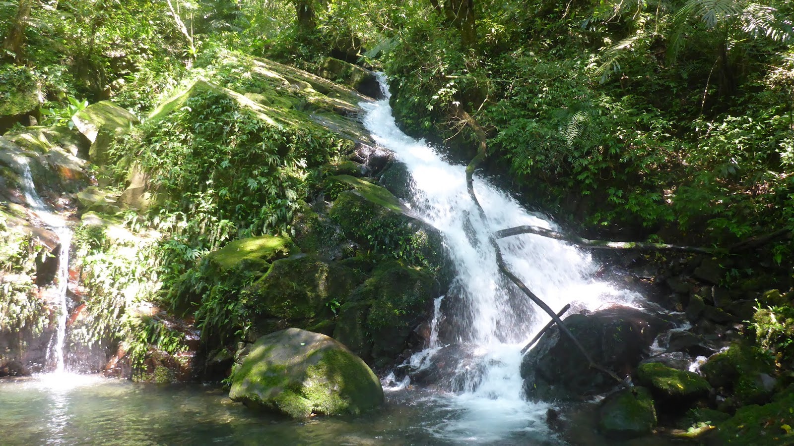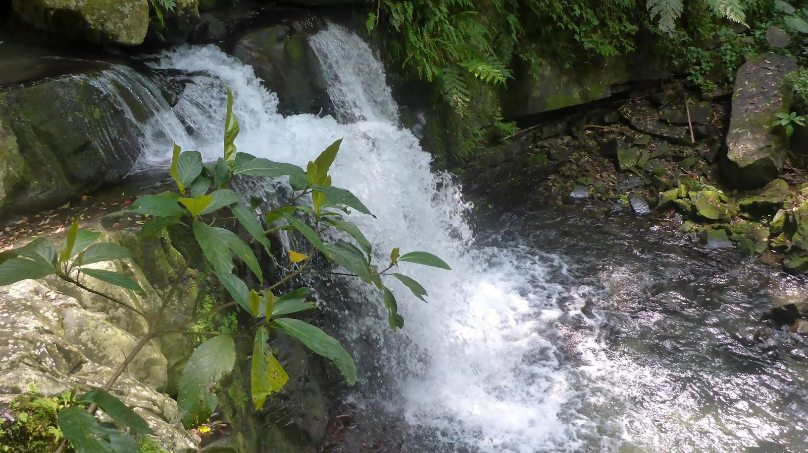 過了小滑瀑之後,沒一會來到匯流口,如果想直接到瀑布頂端,可以在馬路上看到鐵桶的那道支流就下切,就會通到這了,匯流口往前一點就是本日重頭戲,尖山湖瀑頂。