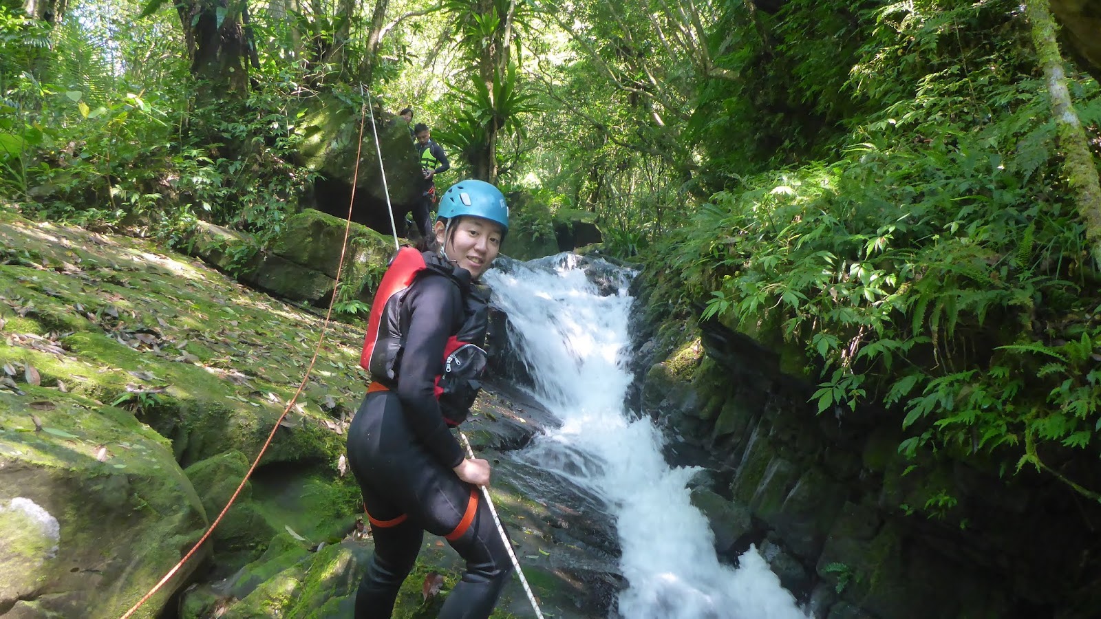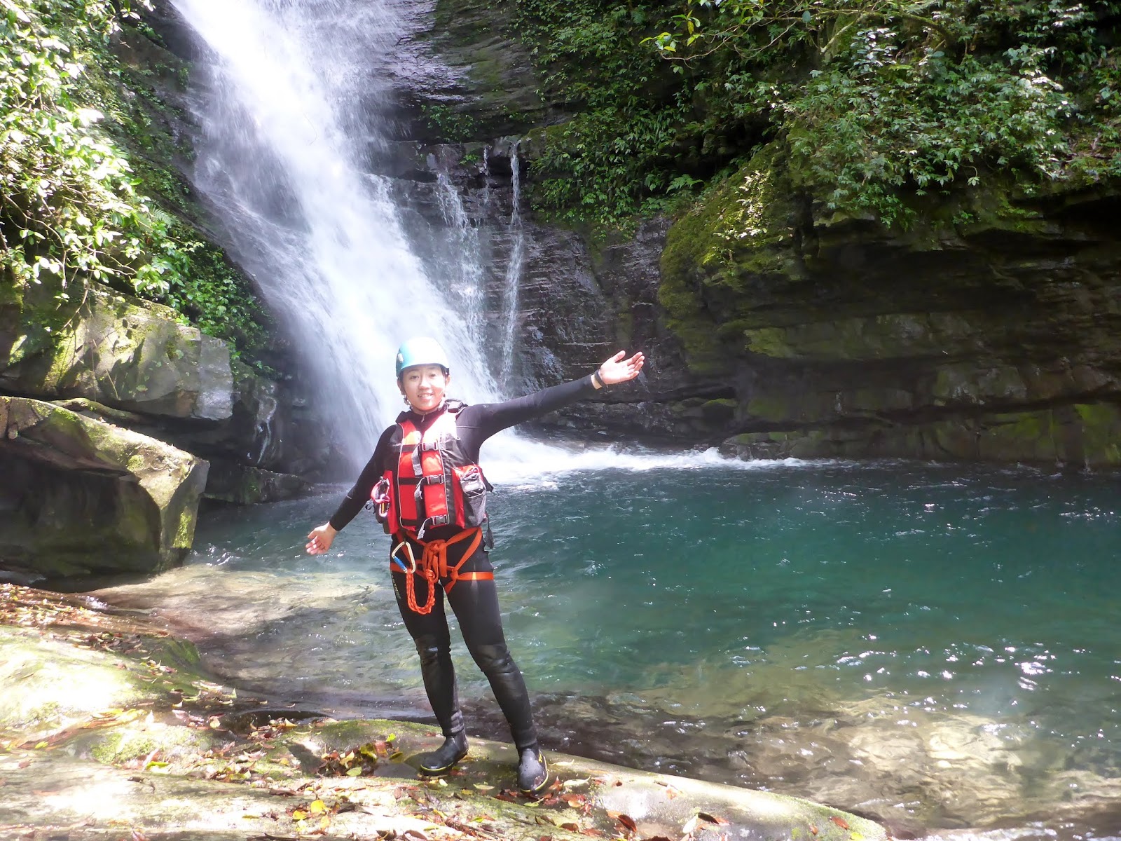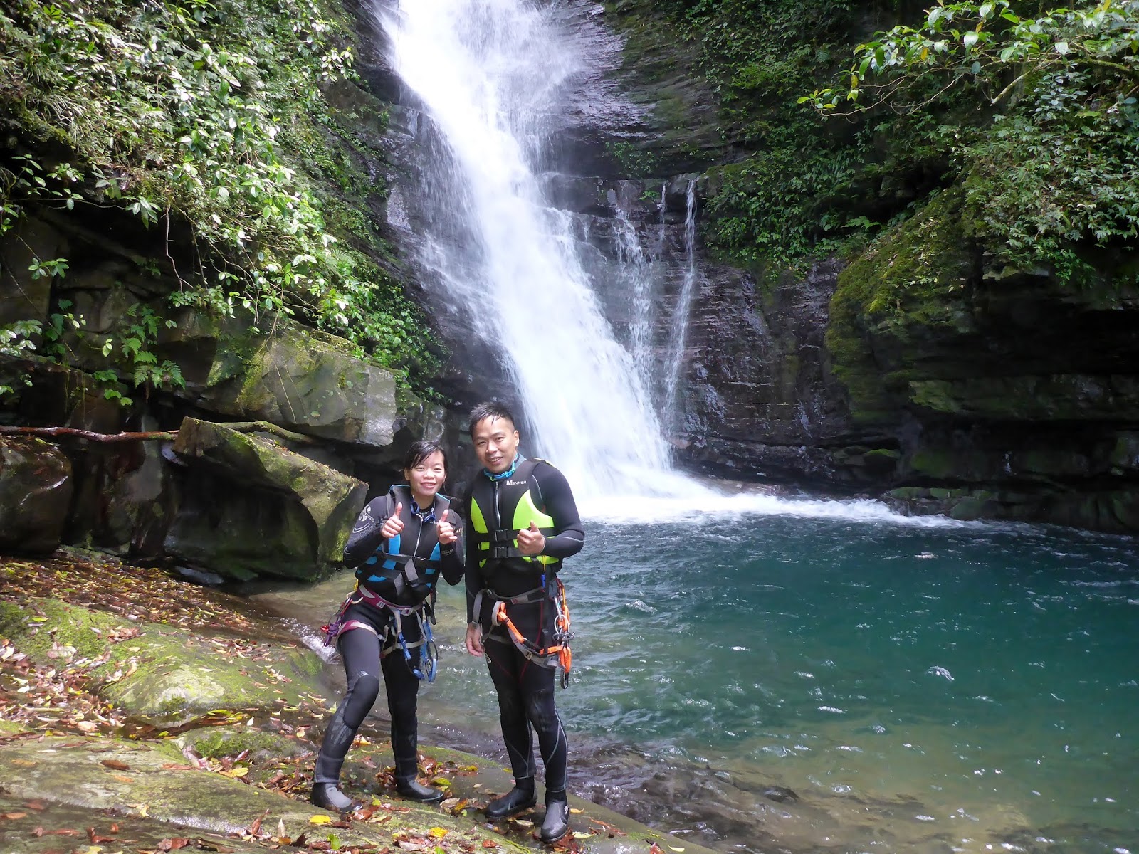 順利垂完,在瀑布下方抽回收繩抽不動,加繩延長後,游到岸邊再抽,果然是角度太死的問題,成功回收繩索,接下來就是悠閒的拍照時間。
