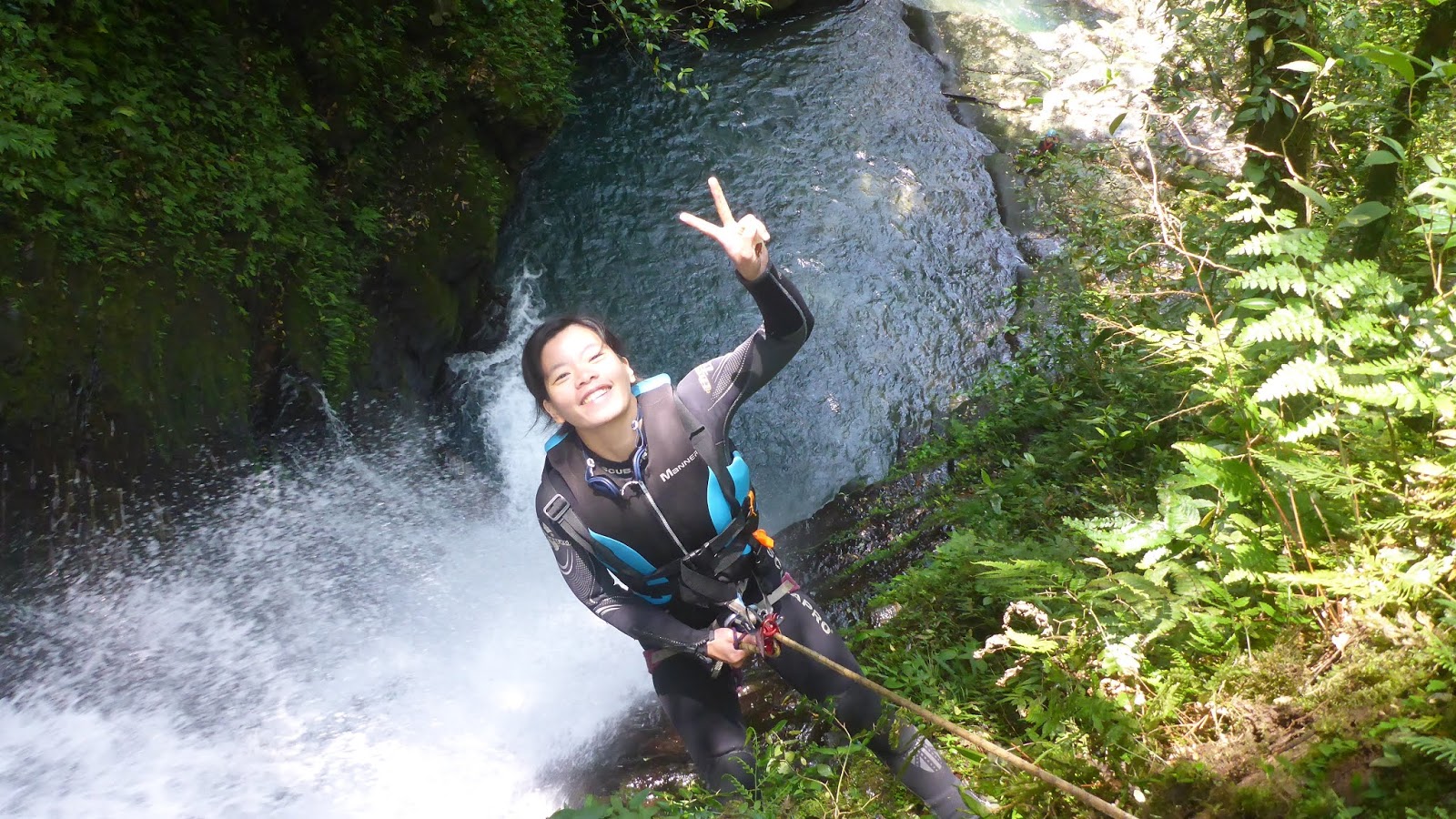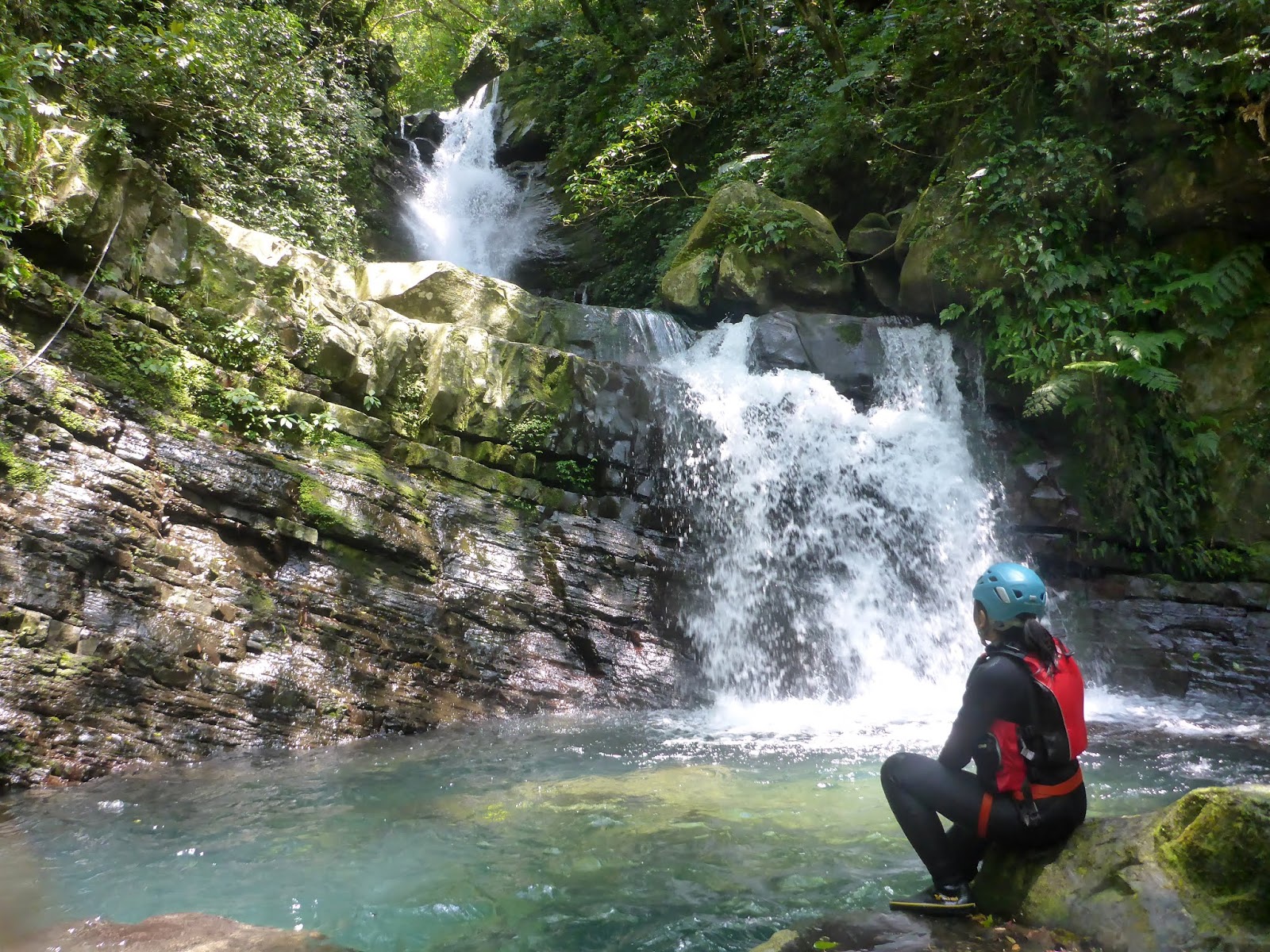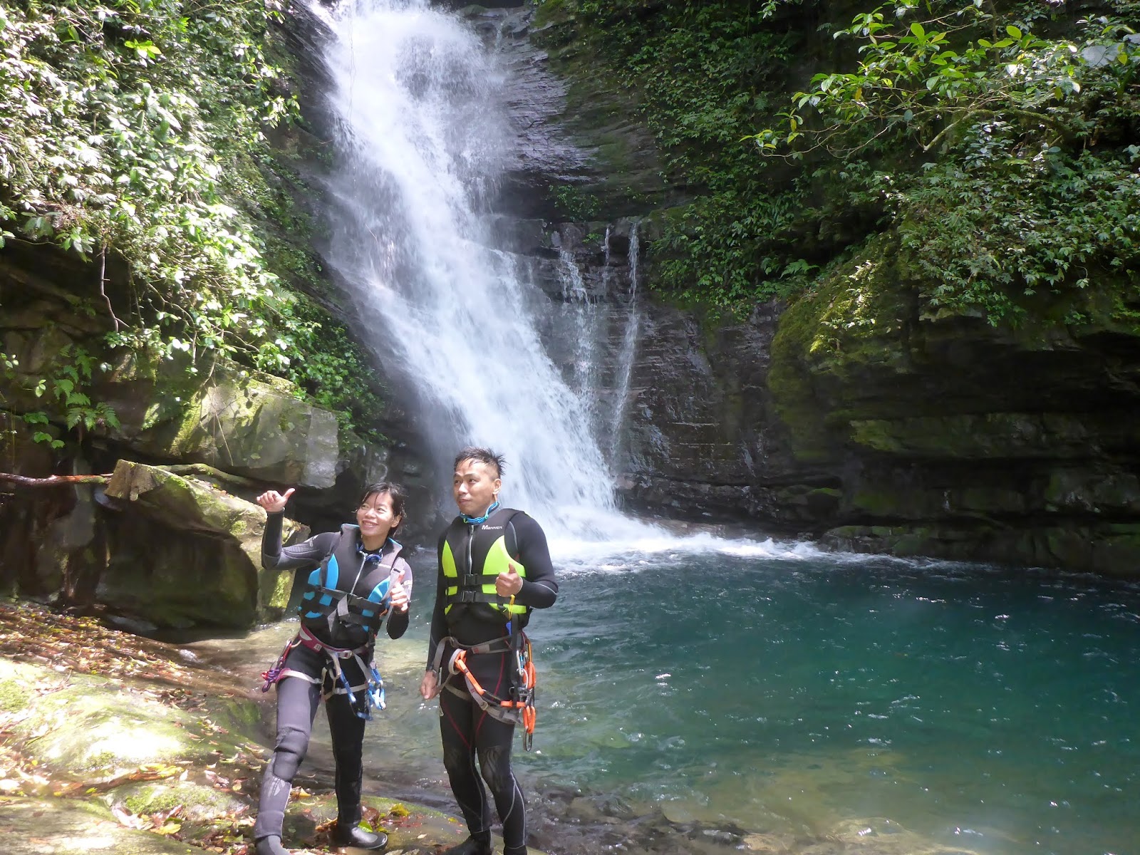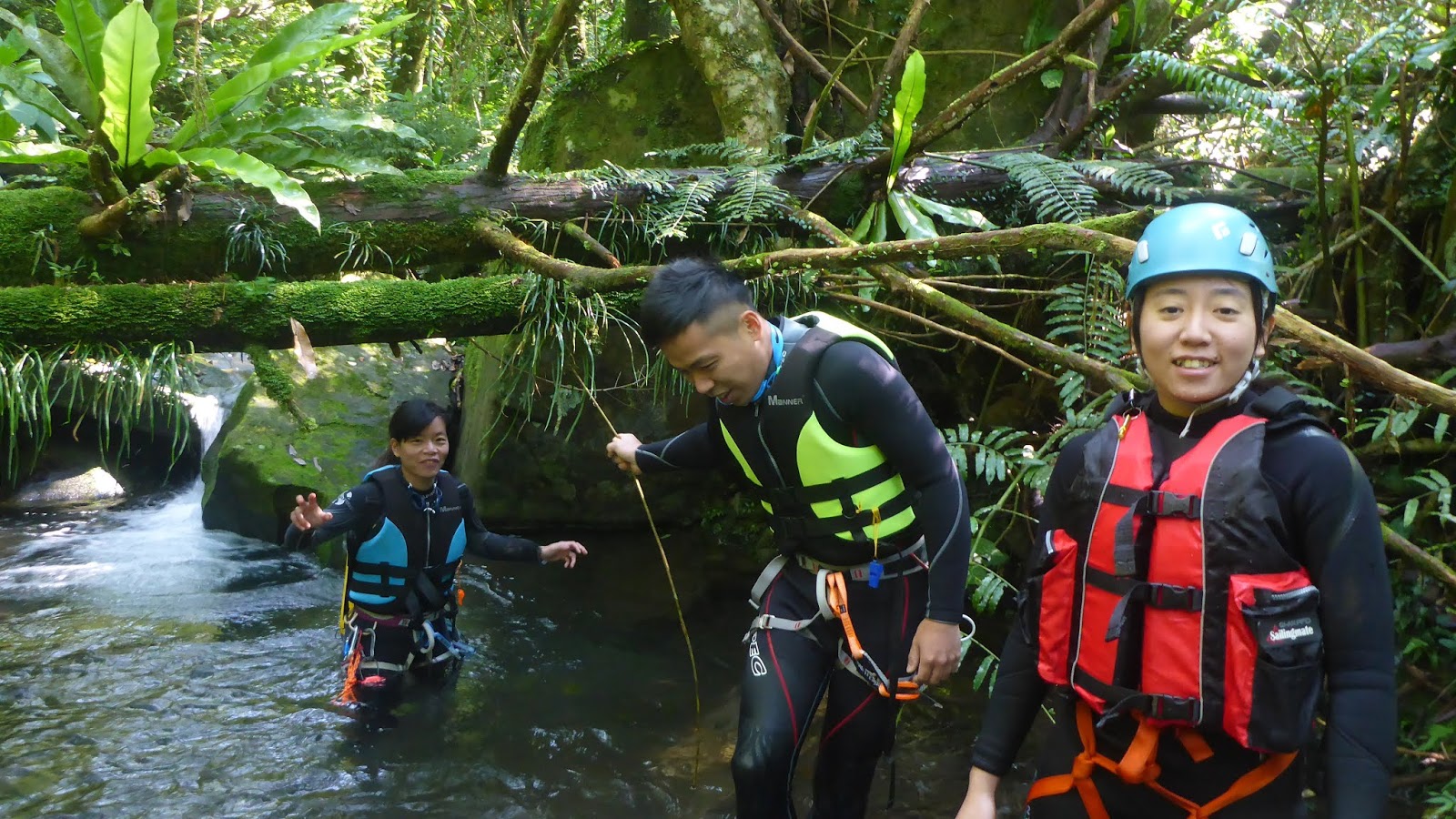 順利垂完,在瀑布下方抽回收繩抽不動,加繩延長後,游到岸邊再抽,果然是角度太死的問題,成功回收繩索,接下來就是悠閒的拍照時間。