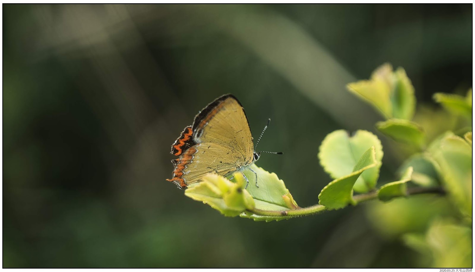 拍攝當下還不會辨認這是什麼蝶?所幸很多二子坪遊記都會提到,很快就查到這是「紅邊黃小灰蝶」。