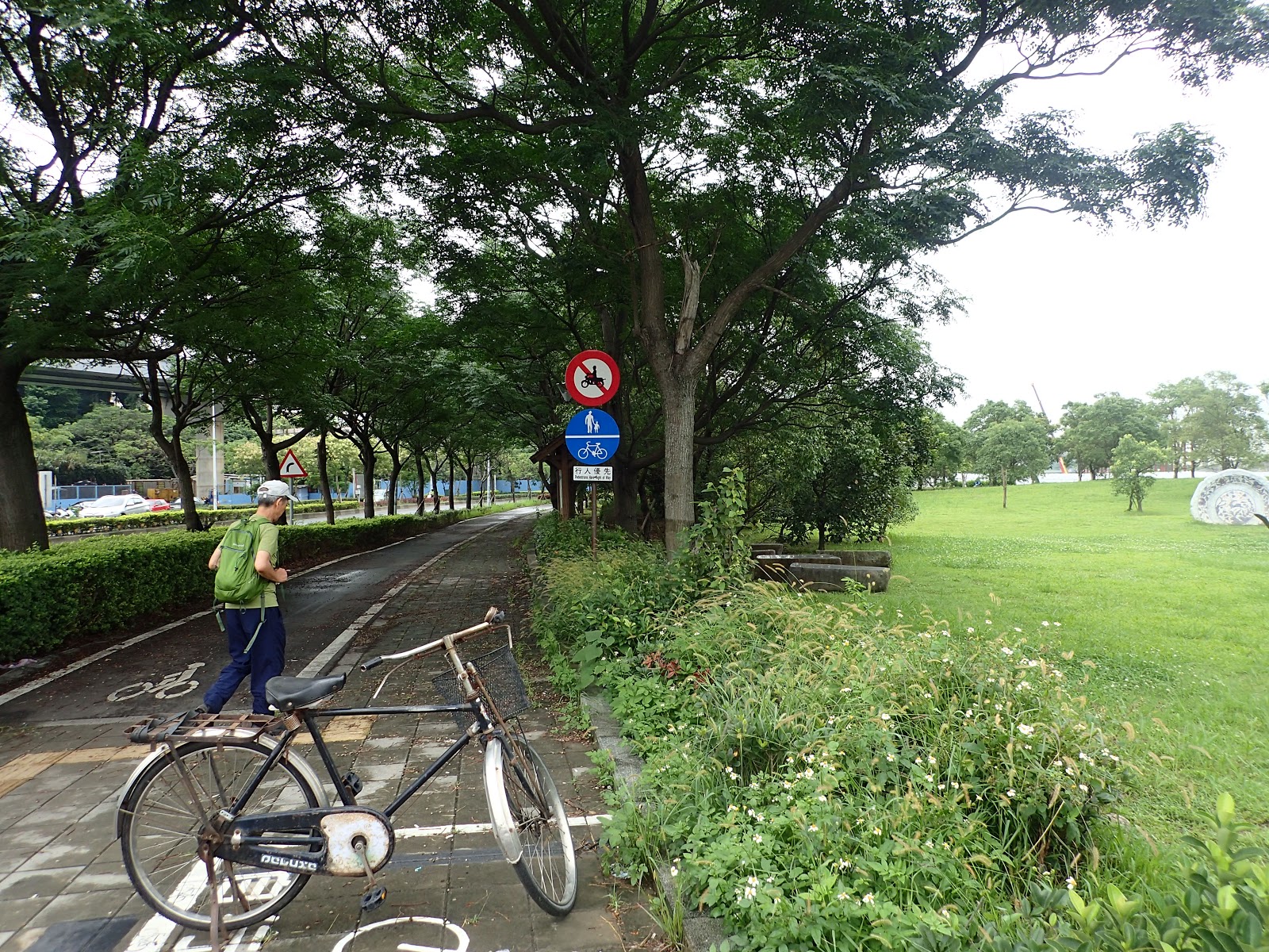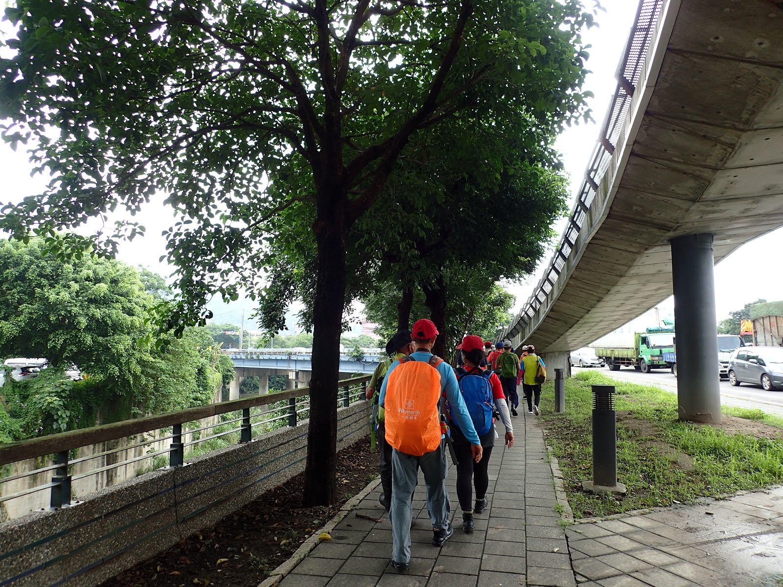 天色陰霾梅雨不斷, 加上手臂疼痛未解, 已經有好些天沒爬山練體能了, 眼看著再幾天郡大+獵人古道望美山就要出發, 嗯, 擔心會跟不上...趁著讓雨找淑芬出門散步壓馬路