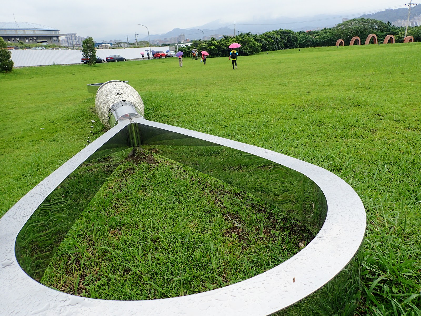 突然雨來了, 一陣一陣的, 眼前的傻姑好天真, 想說肉腿不怕雨淋穿了短裙來, 忘記有蚊蟲這回事, 嘿嘿...結果還好耶, 只不過草坪上有積水, 雖然涼鞋也不怕, 但....下雨還是穿雨鞋會更好些