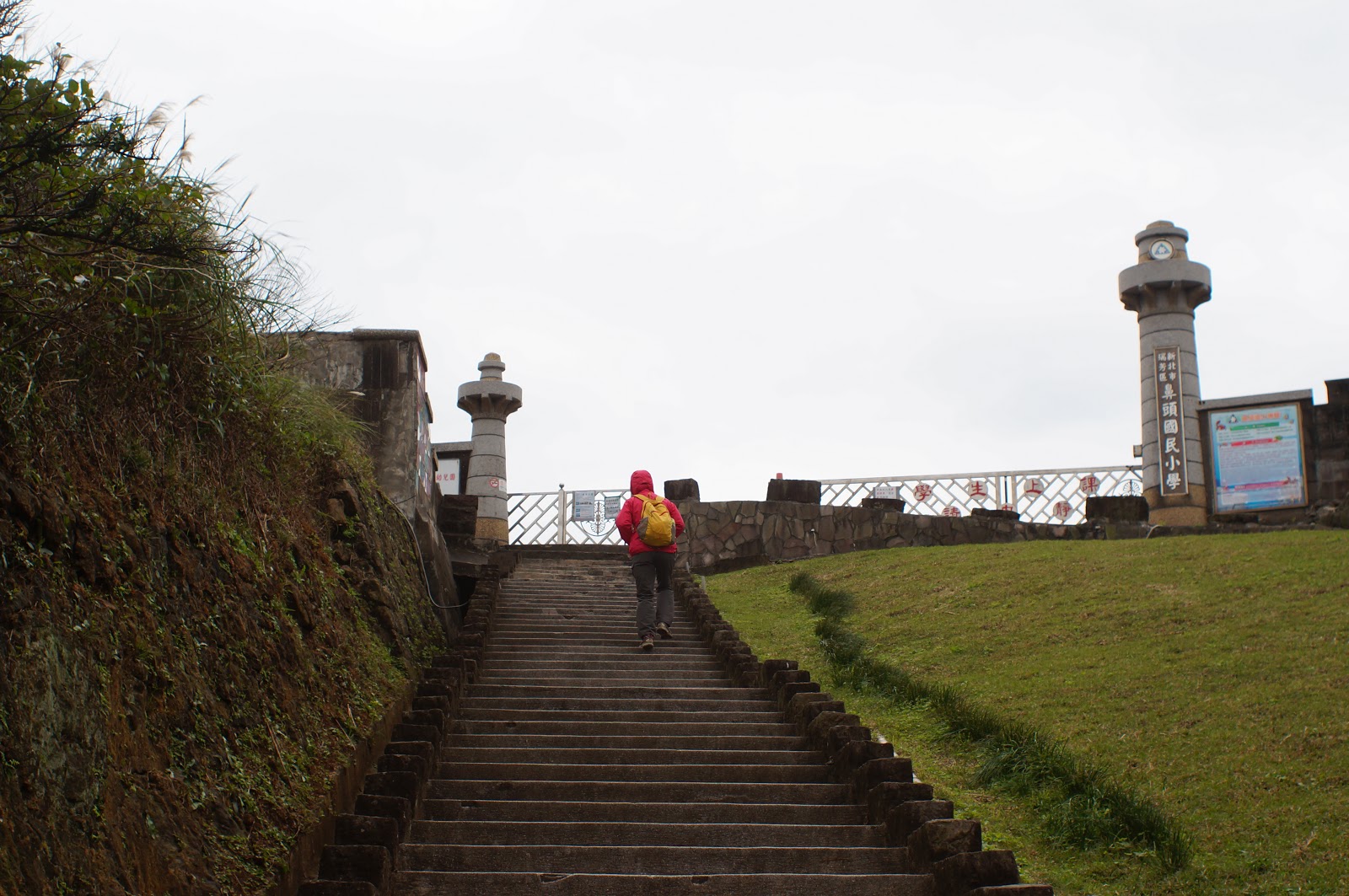 到鼻頭國小大門前左方那條就是鼻頭角步道, 我們是直接進入鼻頭國小校區(如果校門有開)穿過校區從山海關處再接回步道, 因為校區內有廁所, 也可以順道看看這小巧可愛又矗立再這山海美景的學校