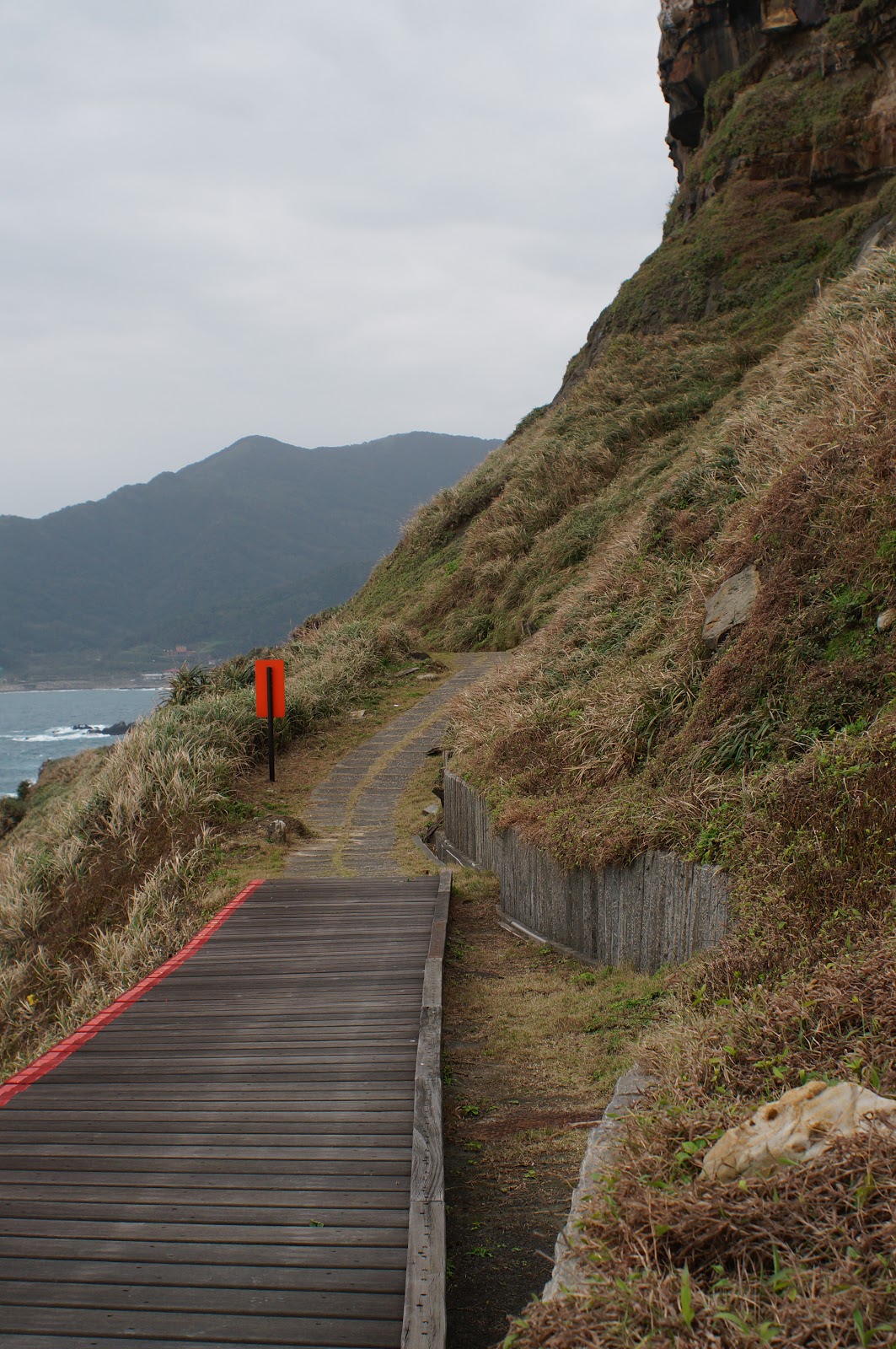 步道整理的很好, 一邊是山壁另一邊則是美麗的海天景色