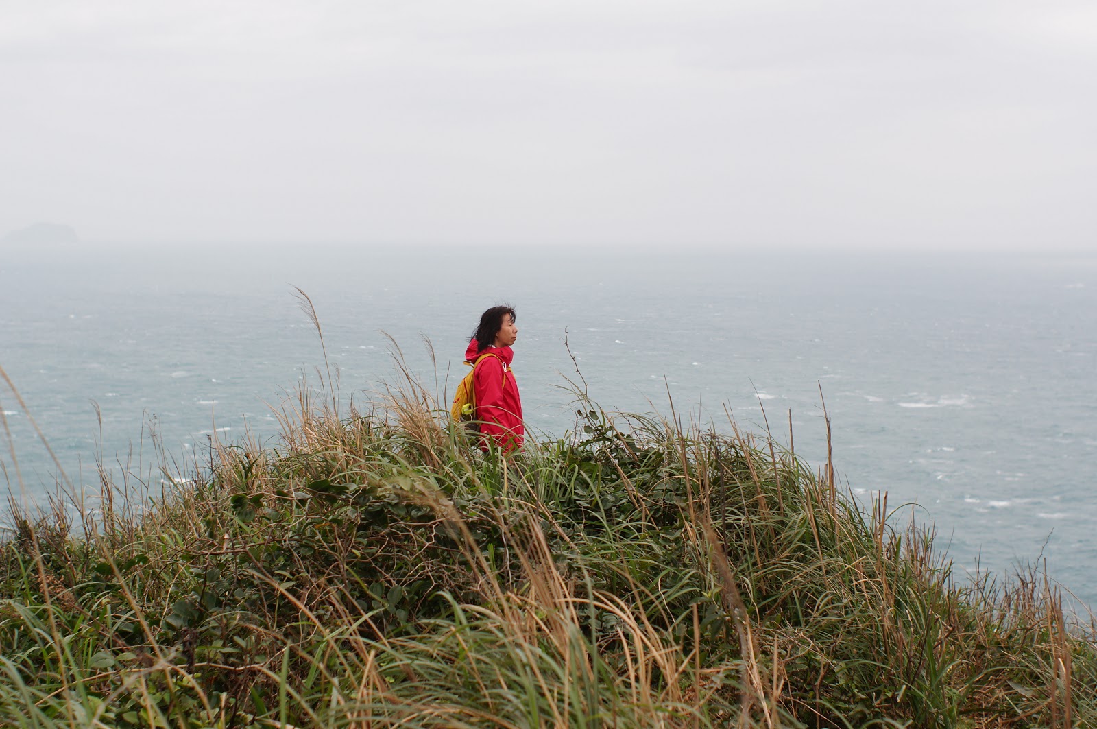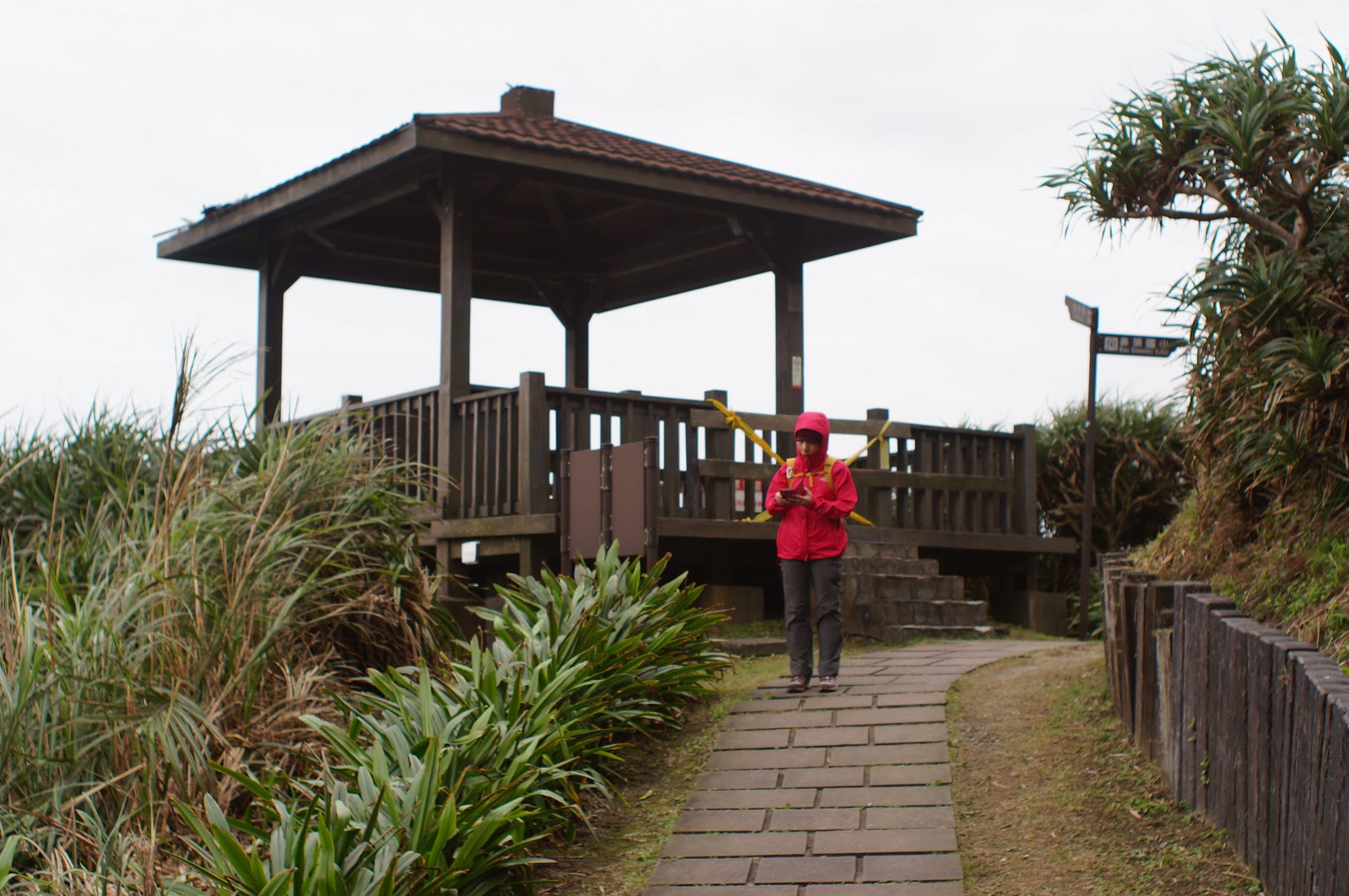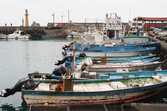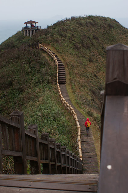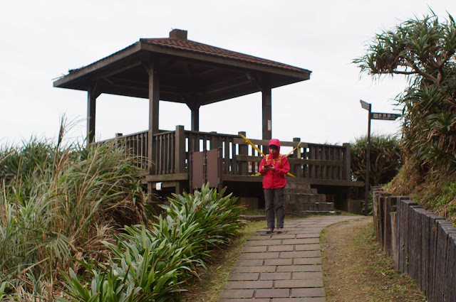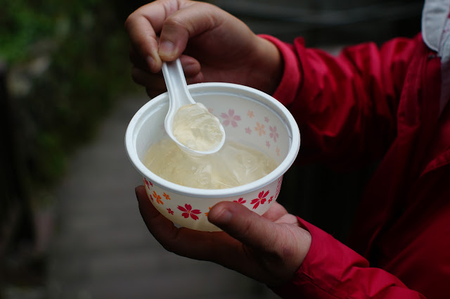 在另一觀景台處休息一下便往下走去鼻頭漁港, 步道上遇到一賣石花凍的小販, 25元買了一碗來吃, 冬天裡雖然是冰的但酸酸甜甜的真的不錯吃! 夏天生意肯定很好的