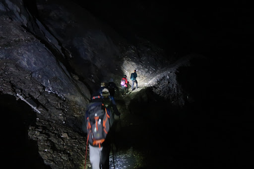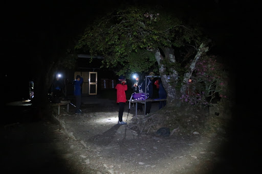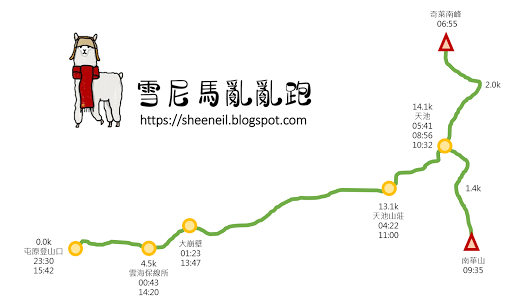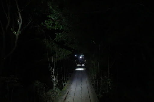 這次連同我與雪娜共10人,23:00浩浩蕩蕩抵達屯原登山口,互相確認裝備後23:20啟登。剛進入能高越嶺步道左側就是斷壁,晚上行走一定要非常非常小心。但總體而言整條路都非常好走,不愧是可以直接騎車到天池山莊的山路。途中會通過許多吊橋與便橋,吊橋都有人數限制,安全起見請遵守規定。另外,夜間通過大崩壁需要格外注意,小心路面同時也要注意崩壁上方的狀況,下雨天或大雨過後強烈建議不要冒險。